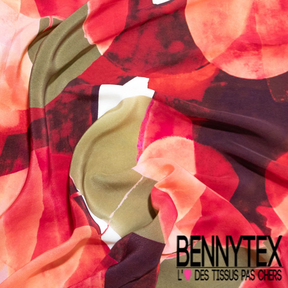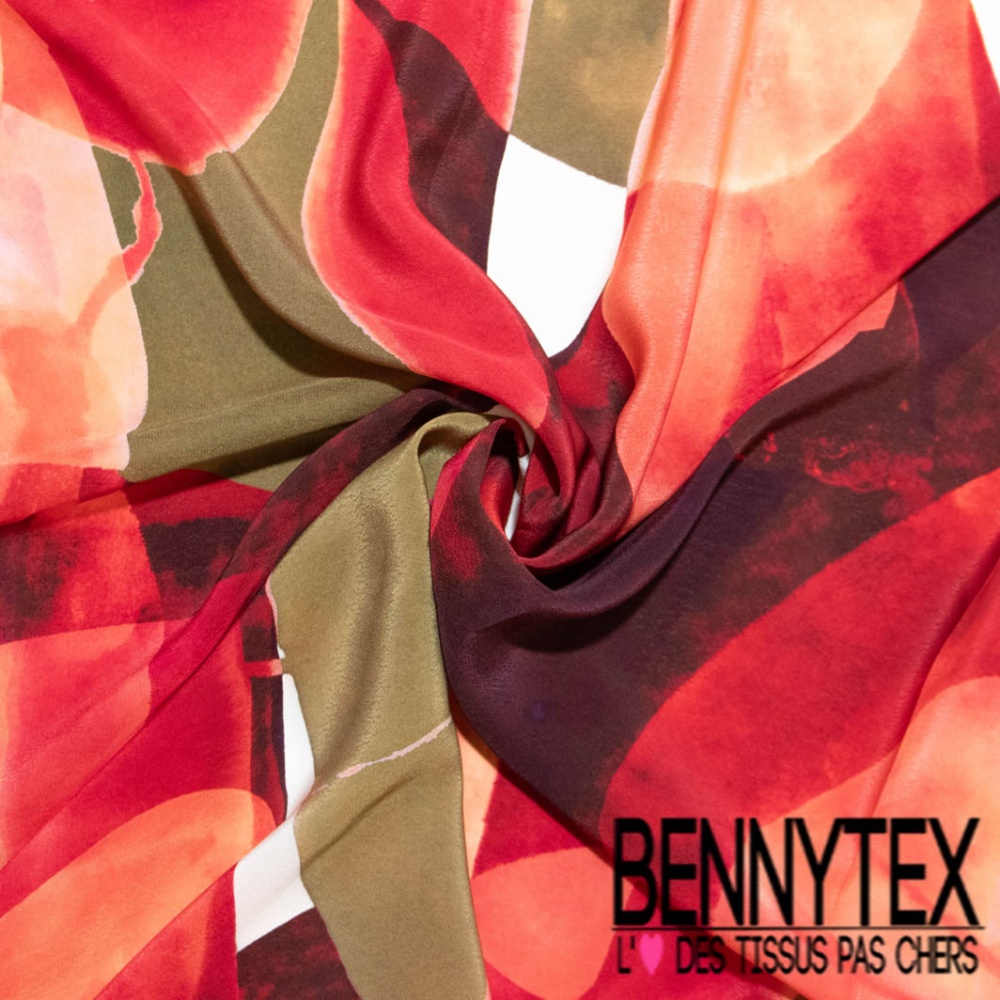Le Crêpe viscose motif enchevêtrement de grande bulle ton rouge beige blanc cassé noir est un  tissu donnant un superbe tombé, idéale pour pantalon fluide, chemisiers, robe, jupe...