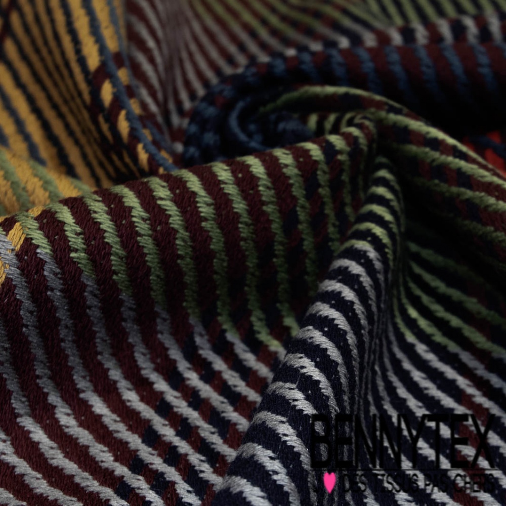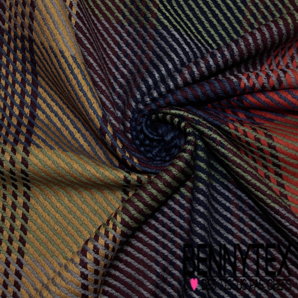 Coton natté motif tartan kaki rouge moutrde bordeaux