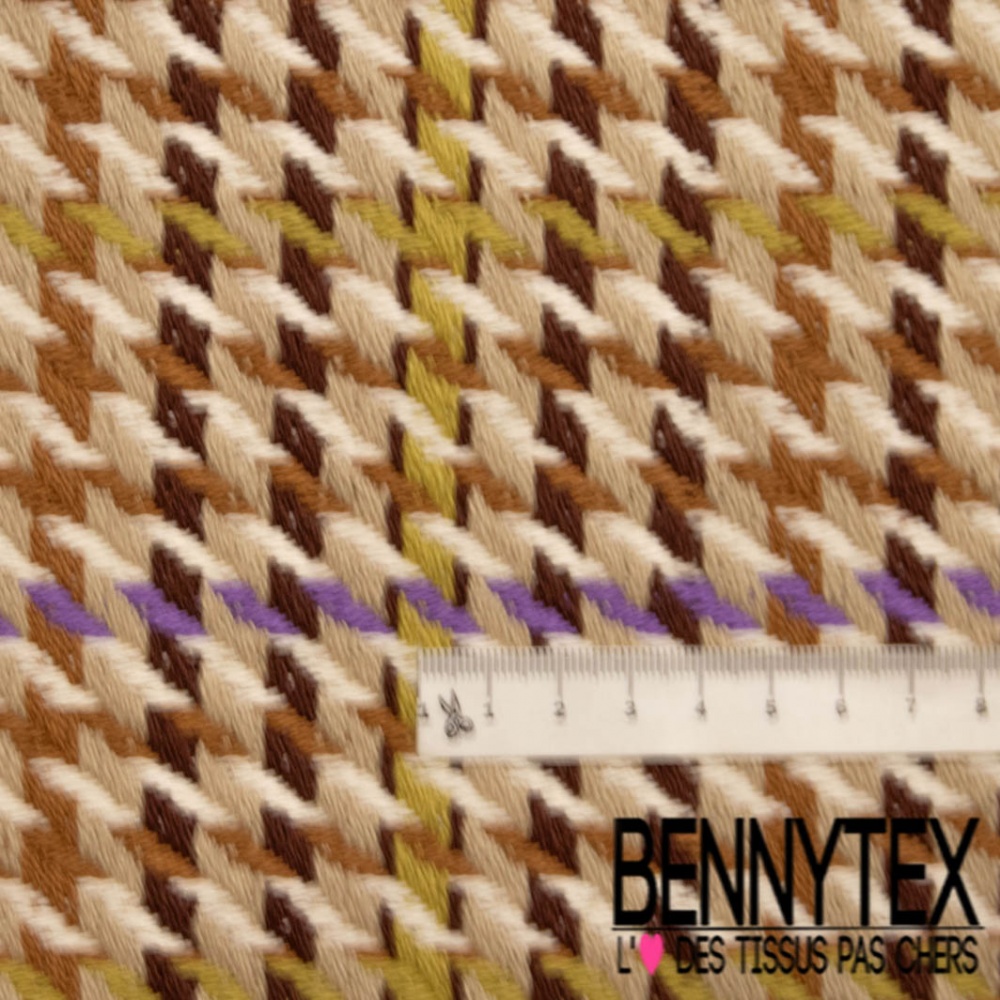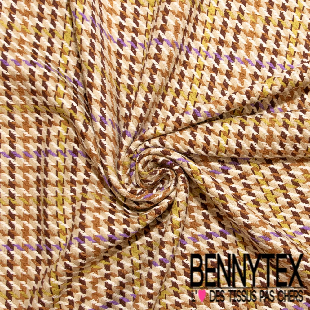 Coton natté motif tartan parme soufre chocolat roux beige blanc discret