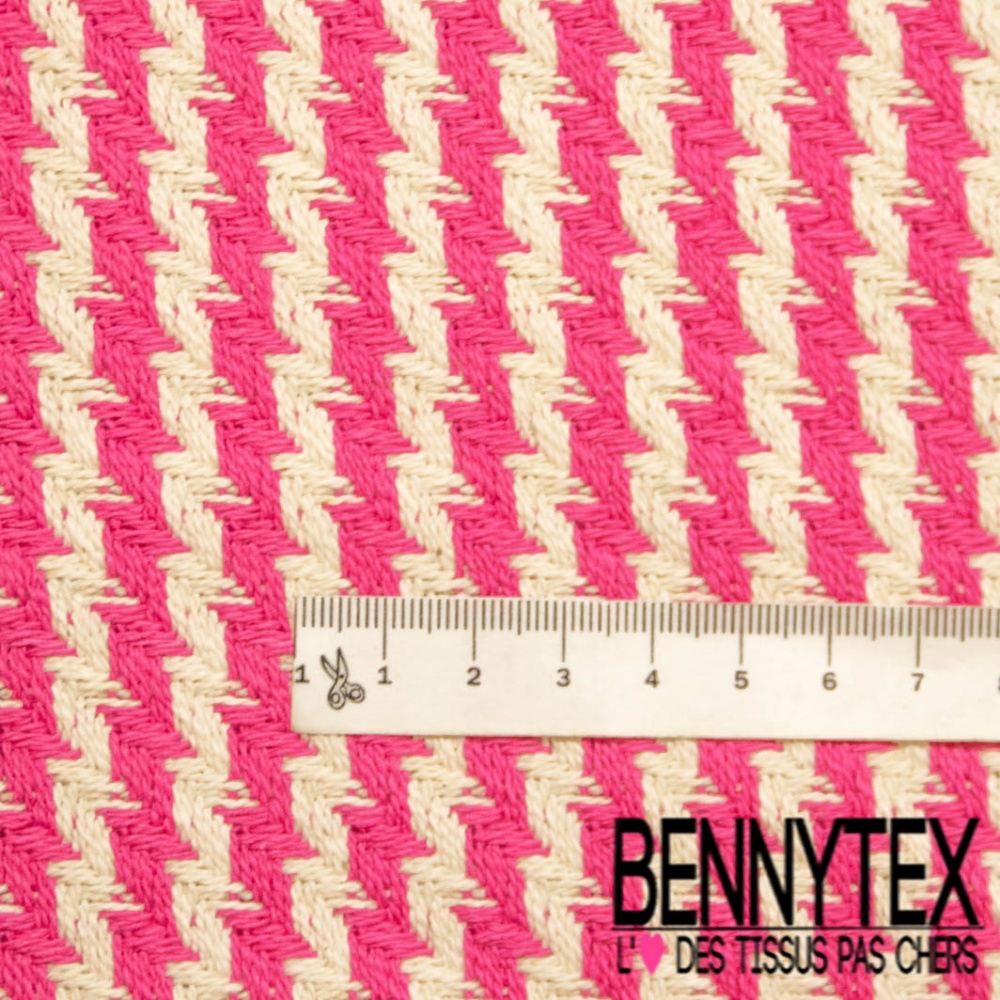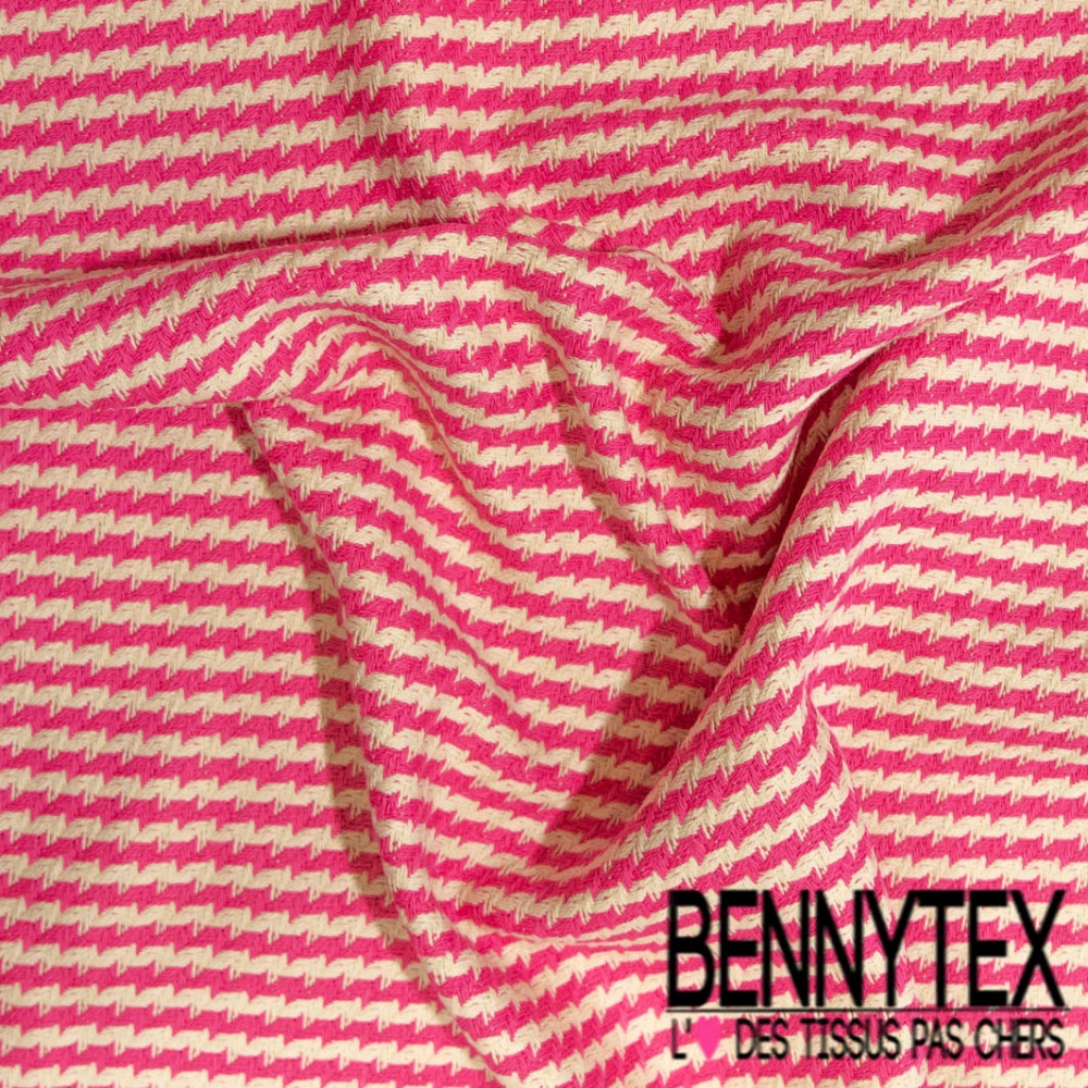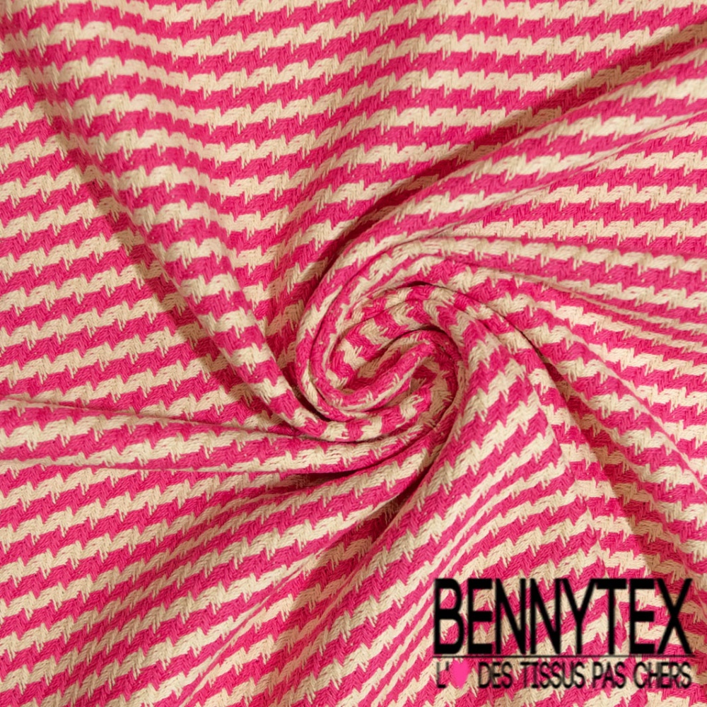 Coton natté motif rayure horizontale fantaisie fushia blanc discret