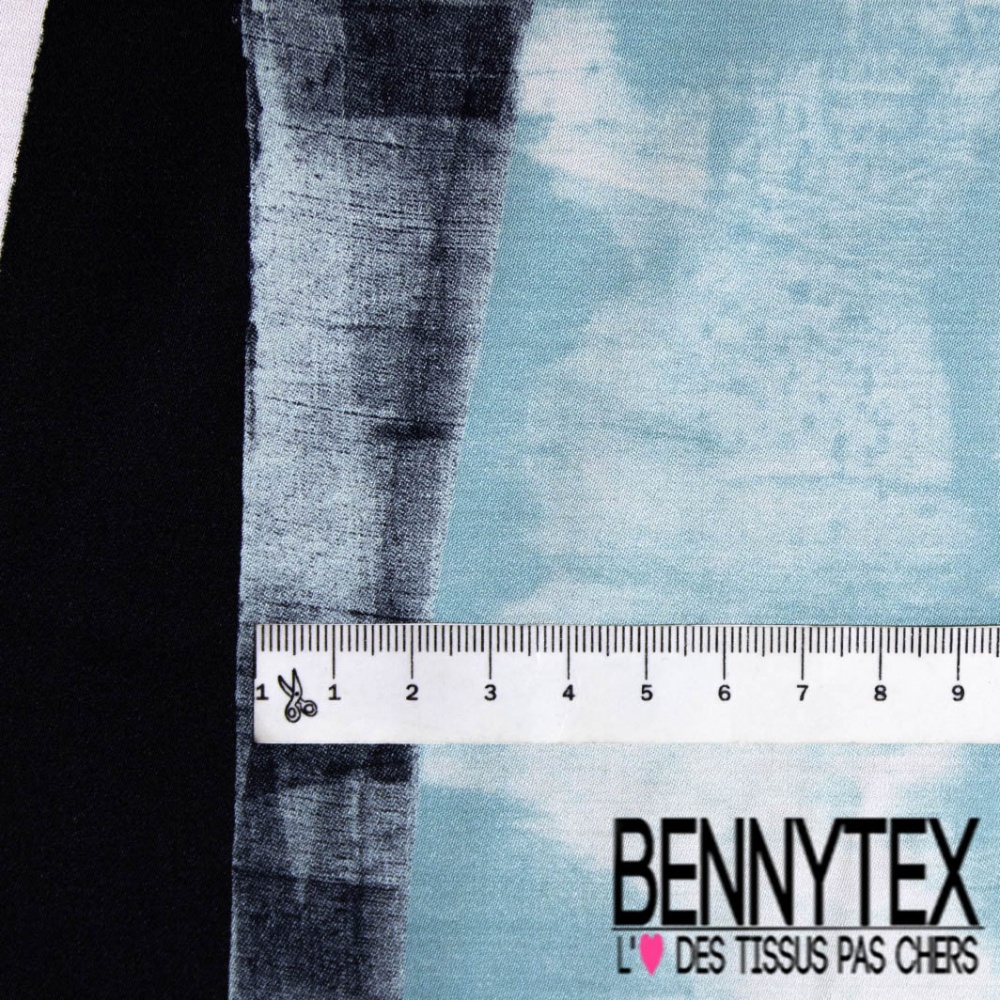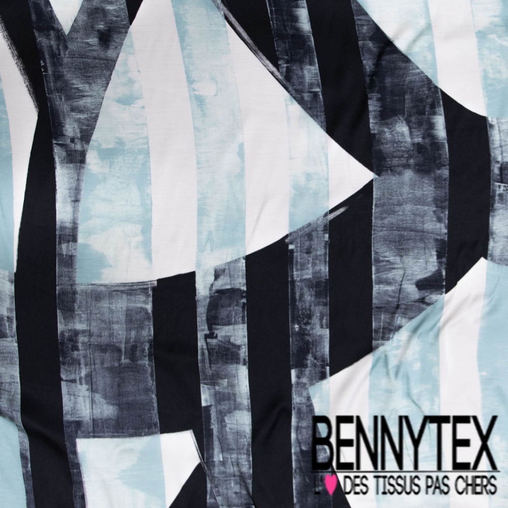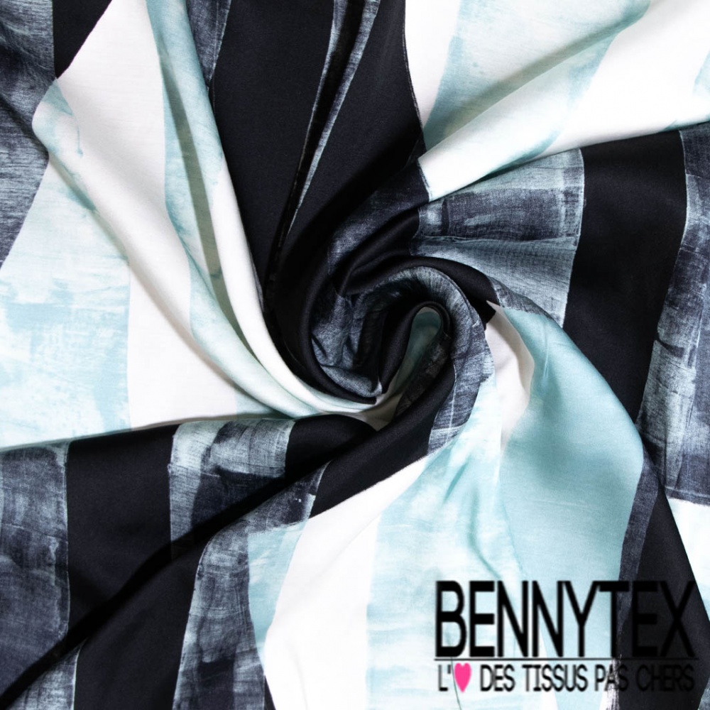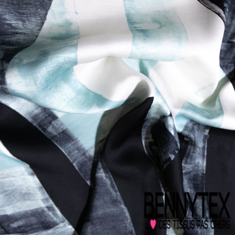 Satin viscose imprimé digital abstrait ton noir lagon pastel blanc discret