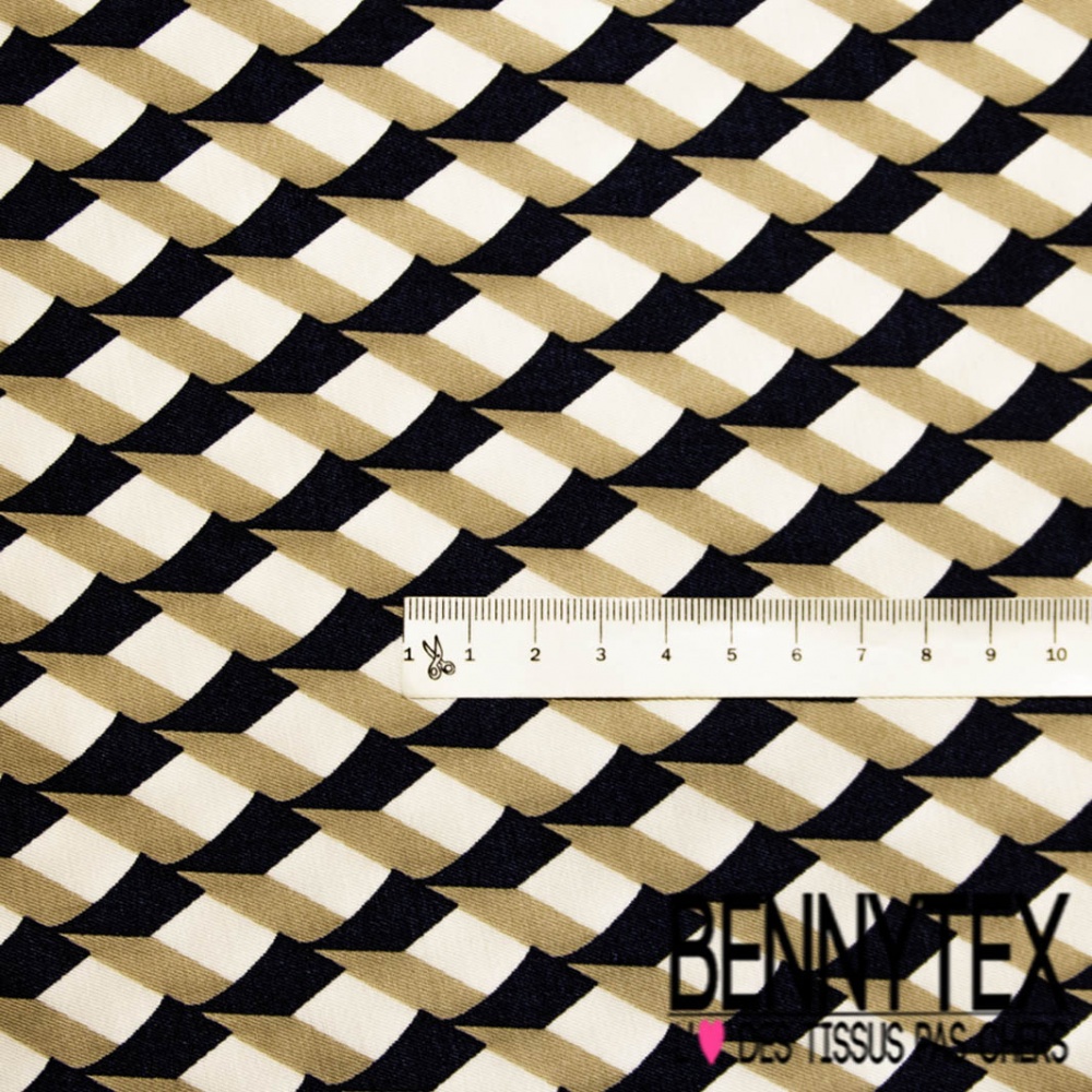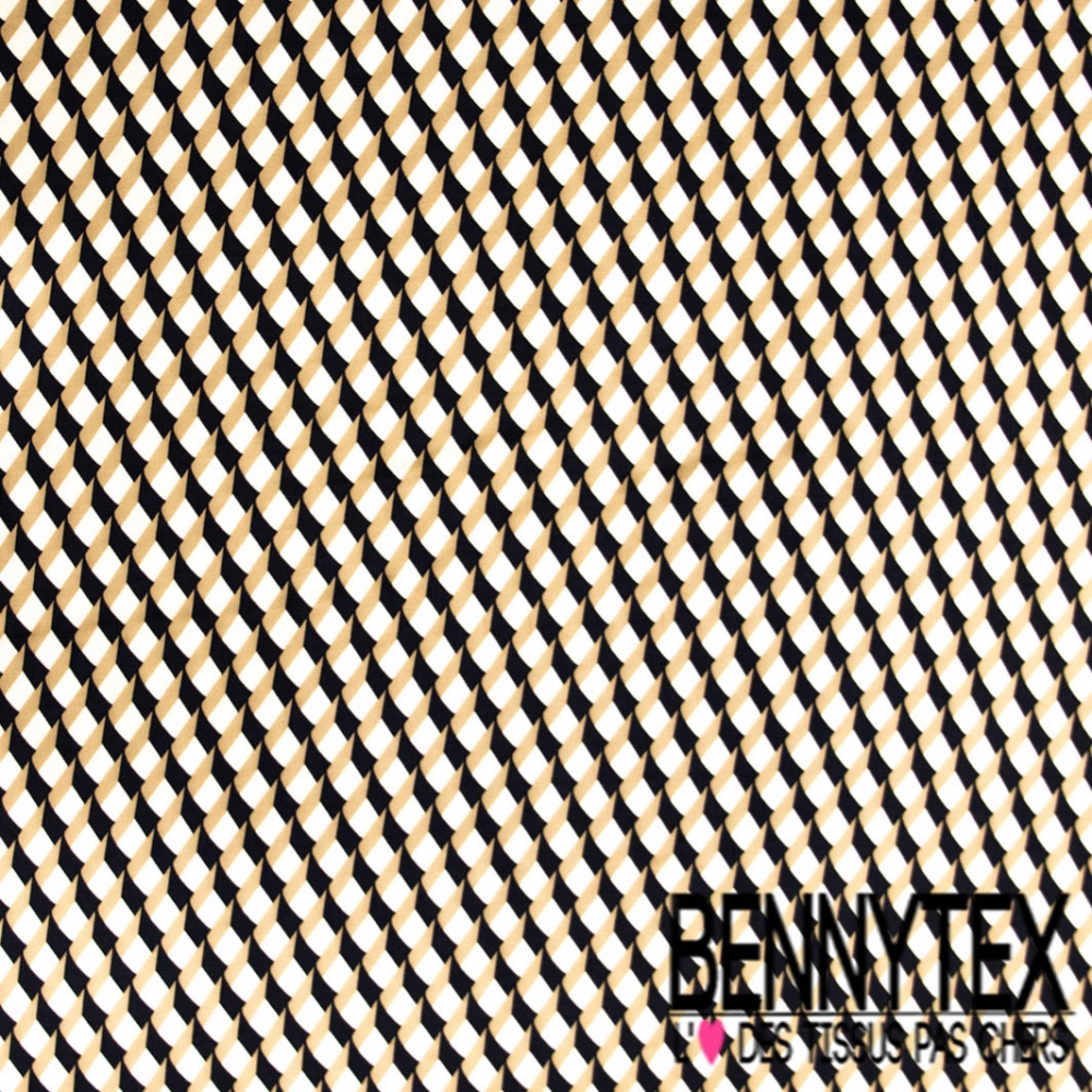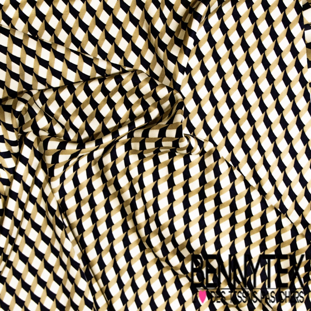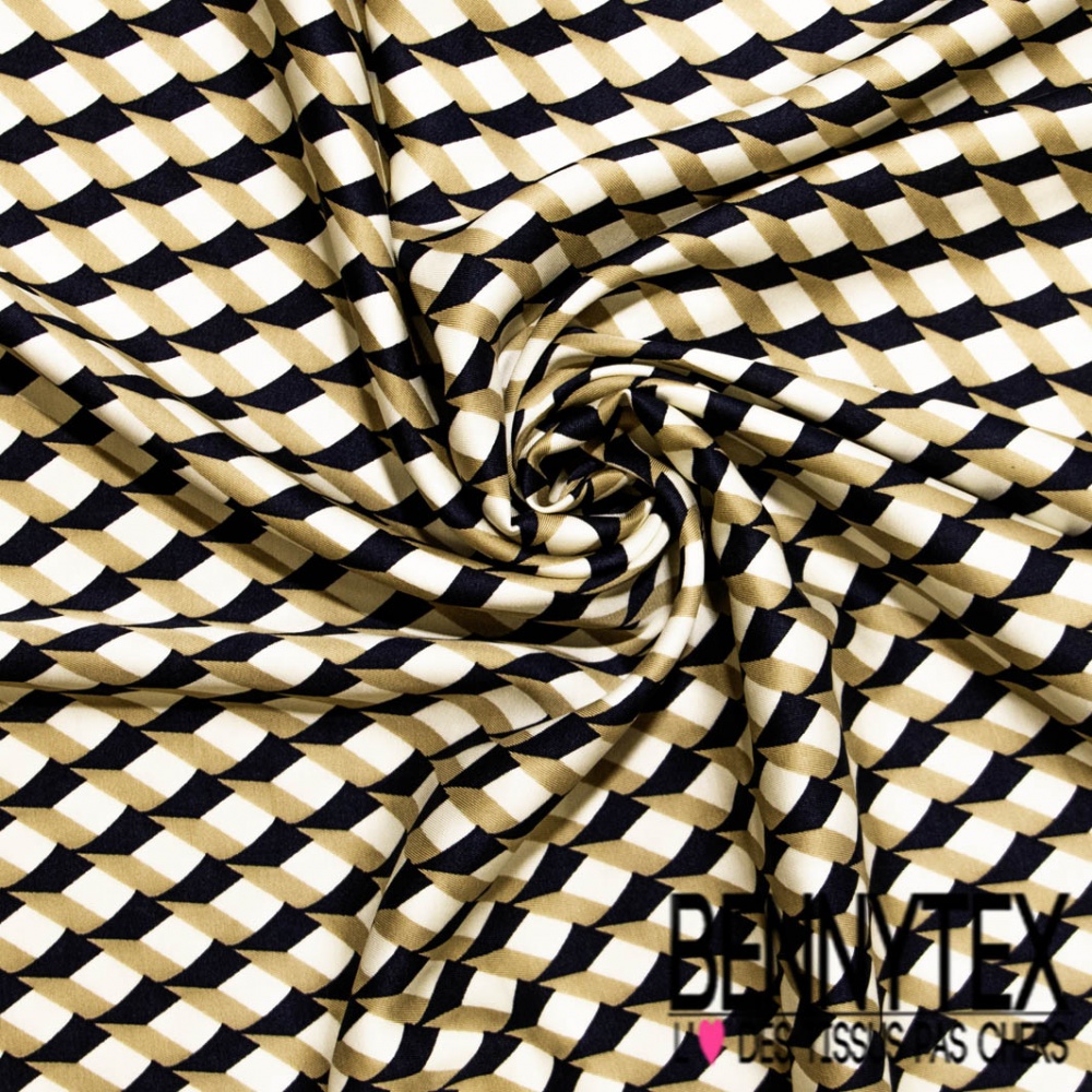 Twill viscose satinée imprimé digital abstrait 3D géométrique sable noir écru