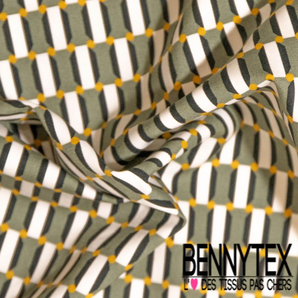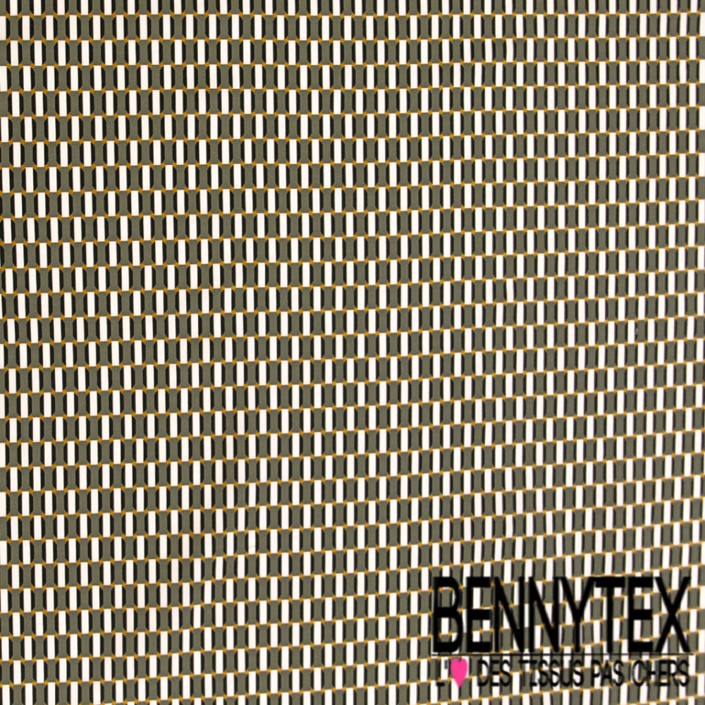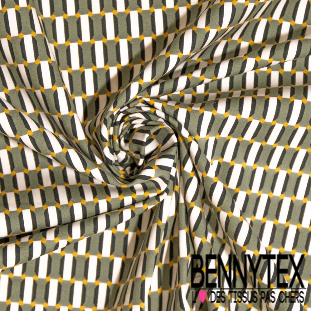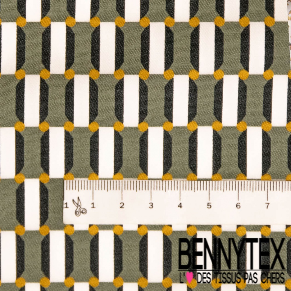 Satin coton élasthanne imprimé géométrique tilleul noir or de pépite blanc discret