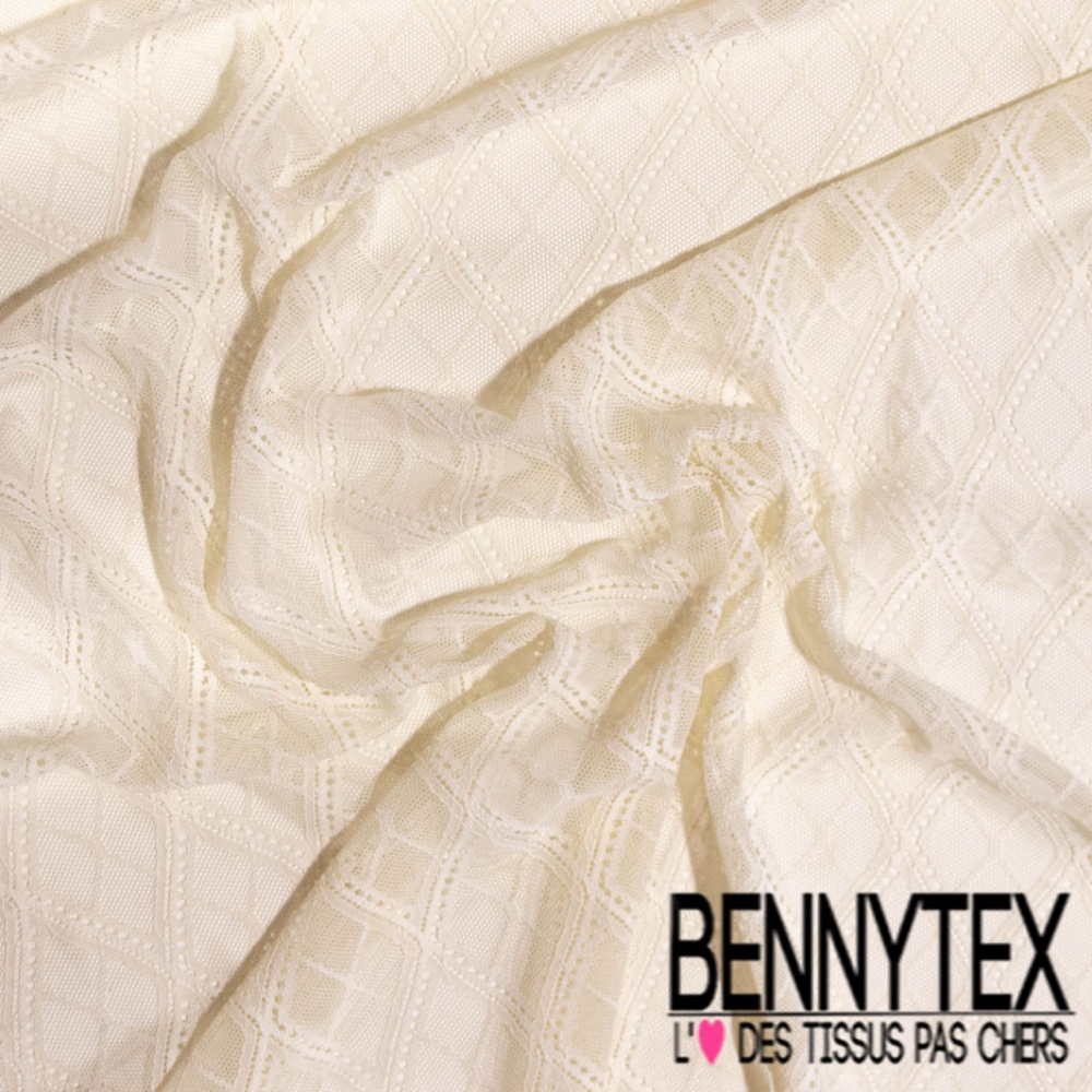 La Guipure losange ajourée ton sur ton blanc cassé est une broderie ajourée d'une densité certaine.