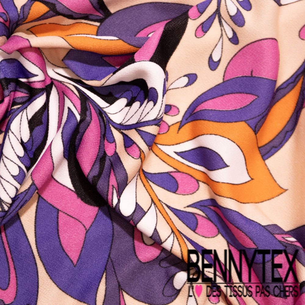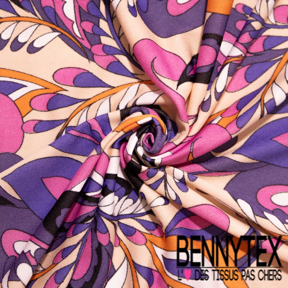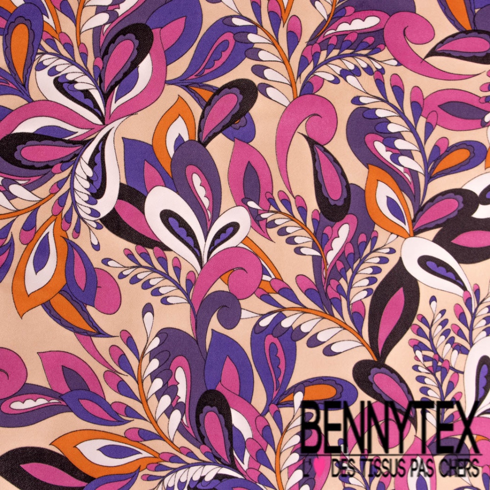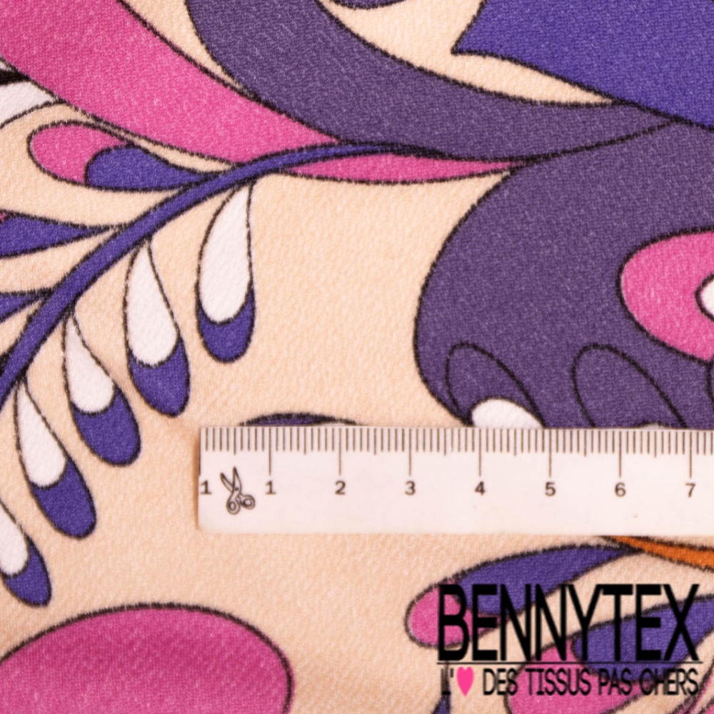 Maille double crêpe élasthanne grand motif cachemire multicolore fond coquille d'oeuf