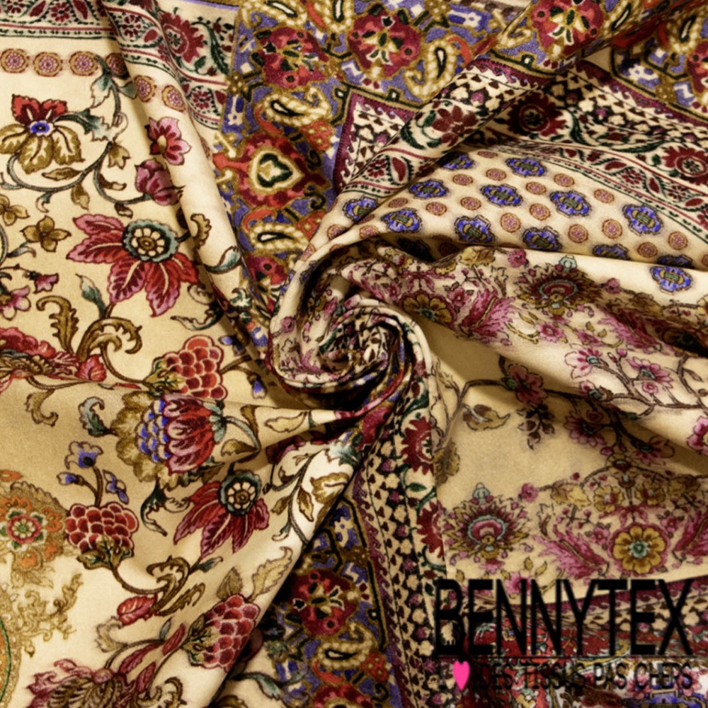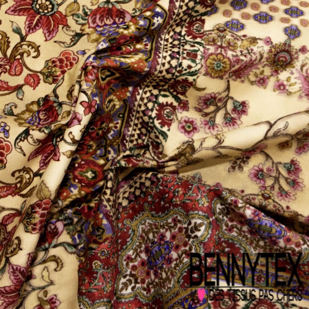 Velours lisse ras de coton élasthanne imprimé digital cachemire vintage
