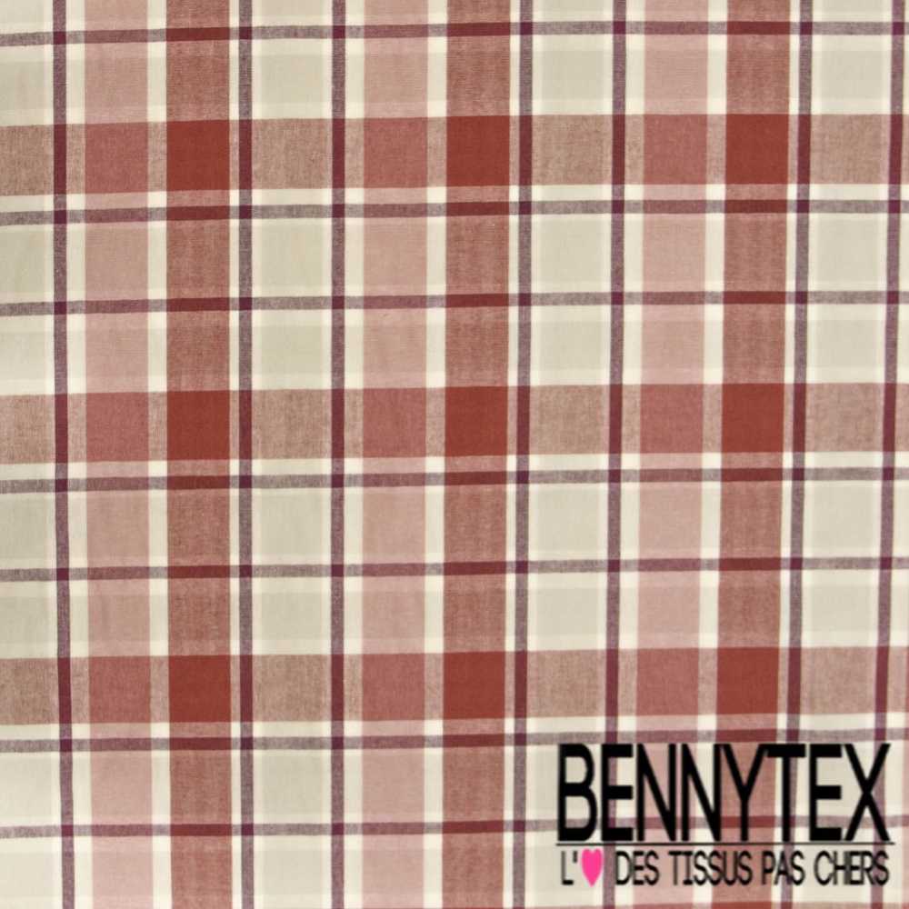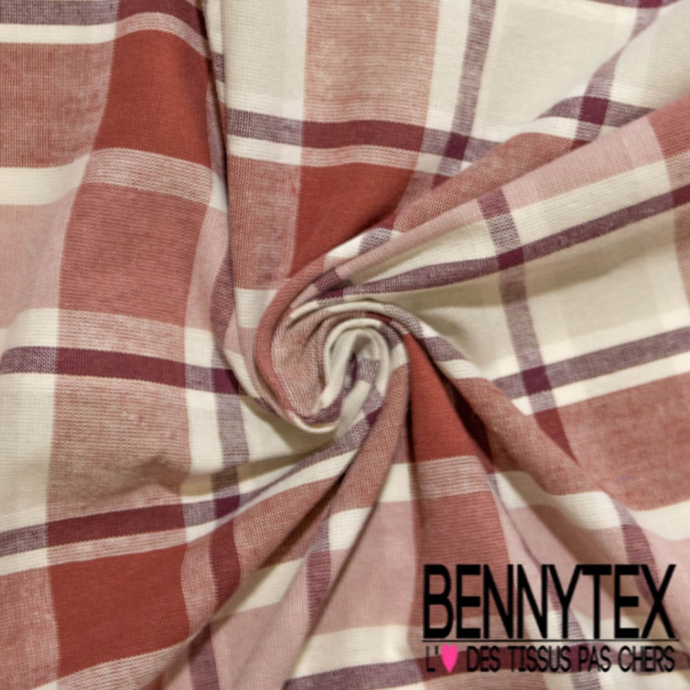 Lin tissé teint digital grand carreau lie de vin blanc cassé gris perle bordeaux