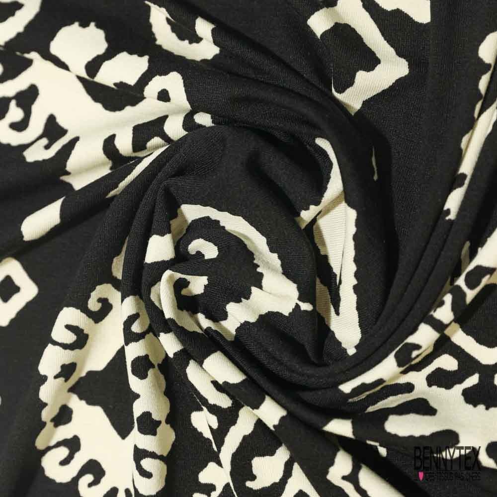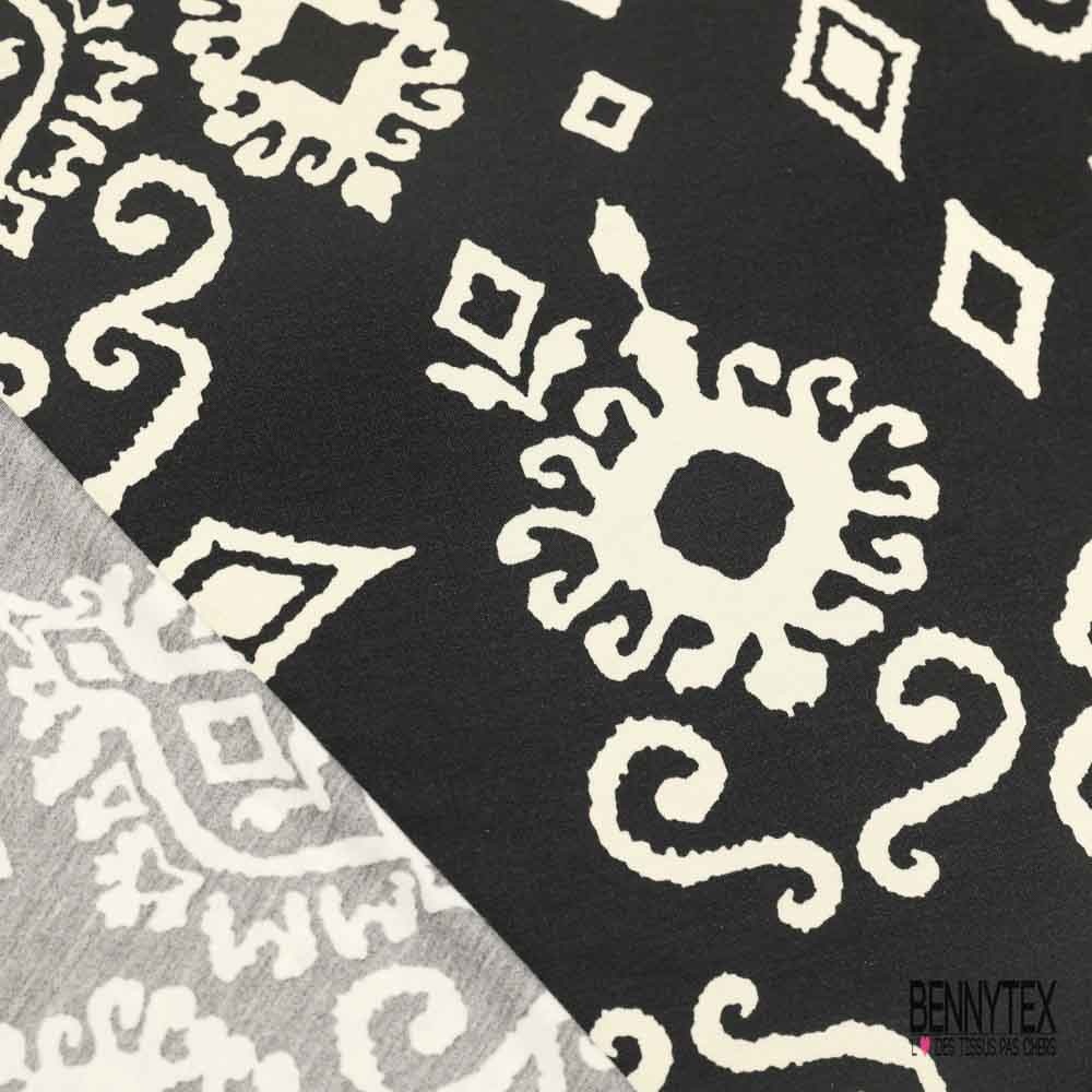 Jersey viscose imprimé digital baroque blanc cassé fond noir