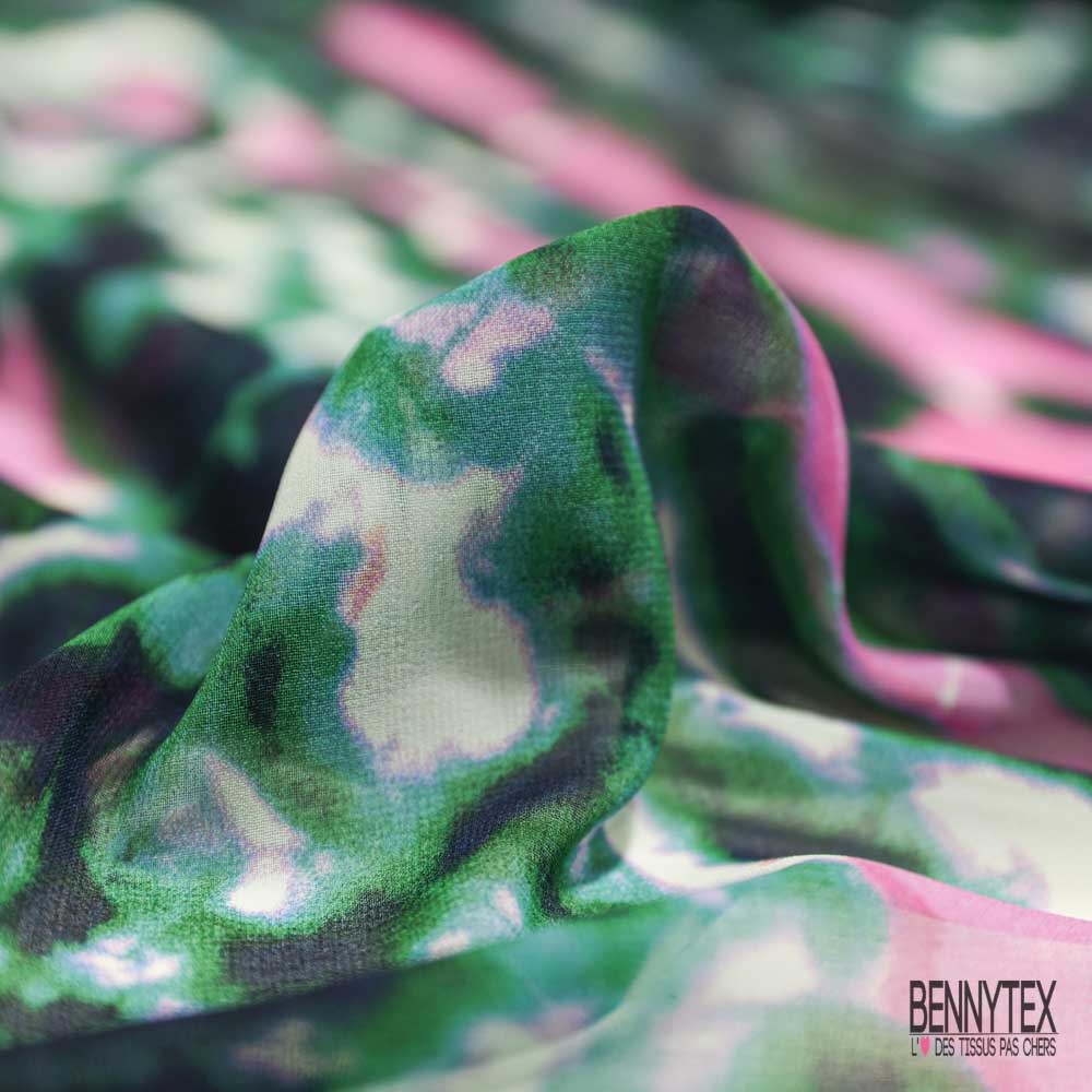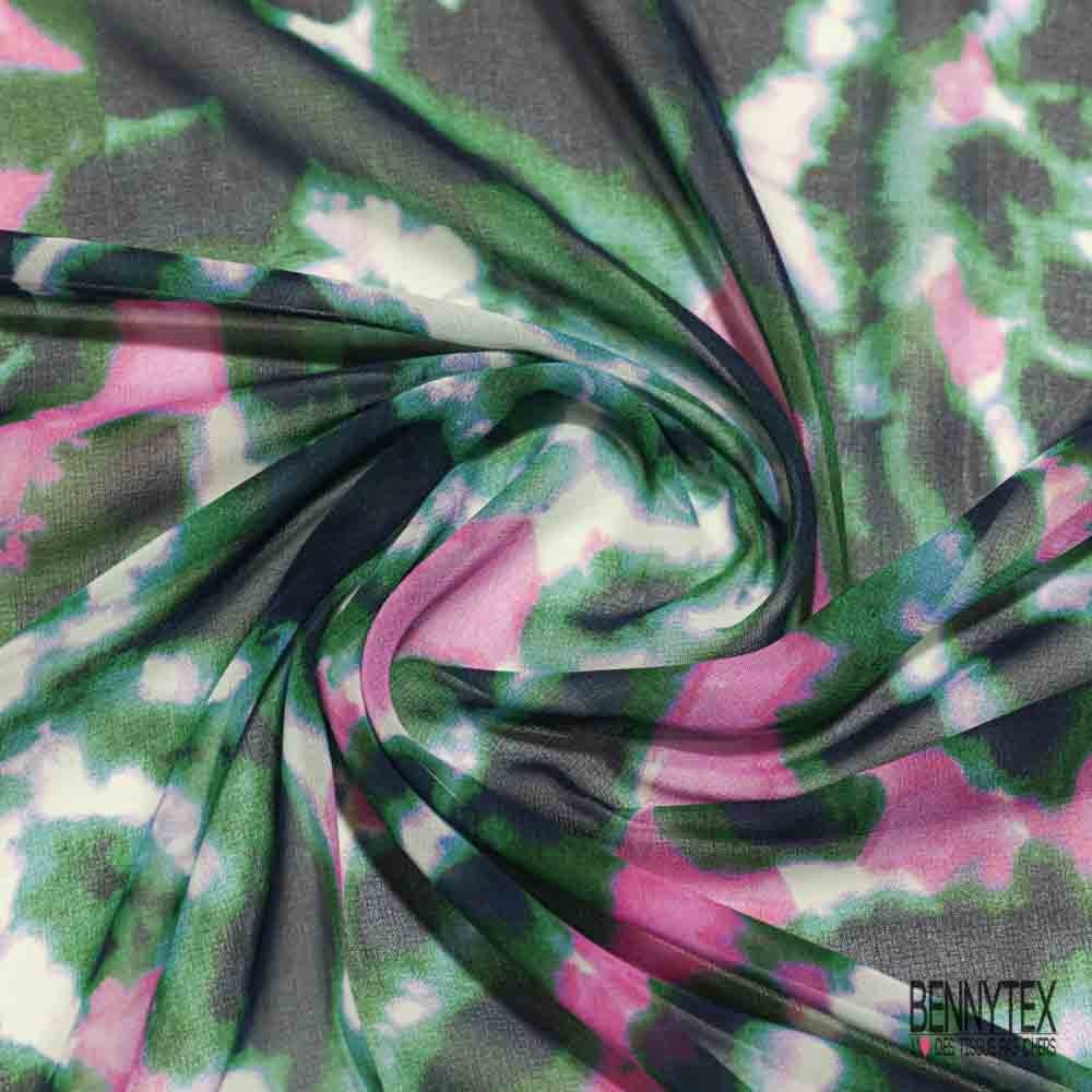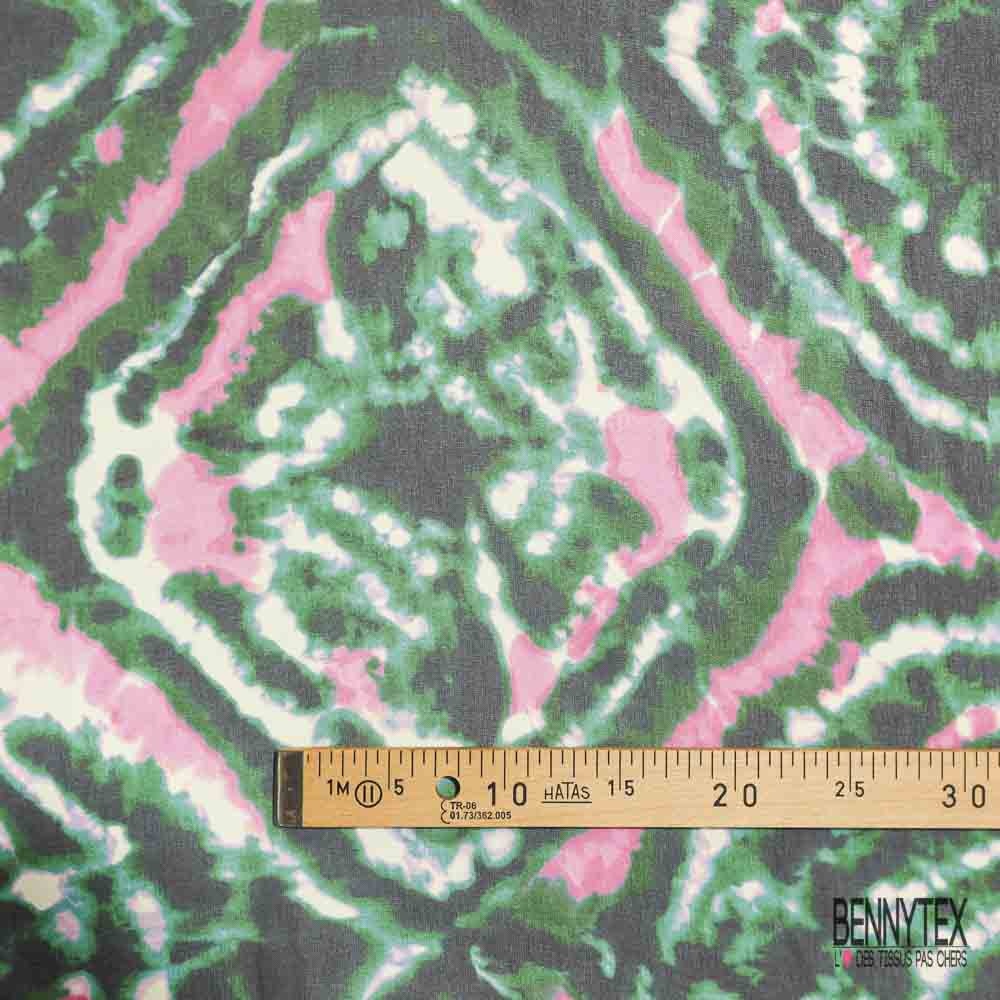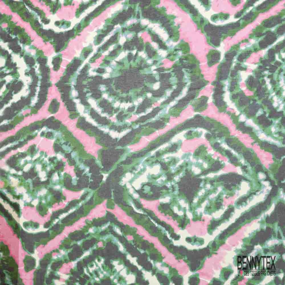 Coupon 3m mousseline imprimé losange seventie's tie and dye ton vert rose marine blanc optique