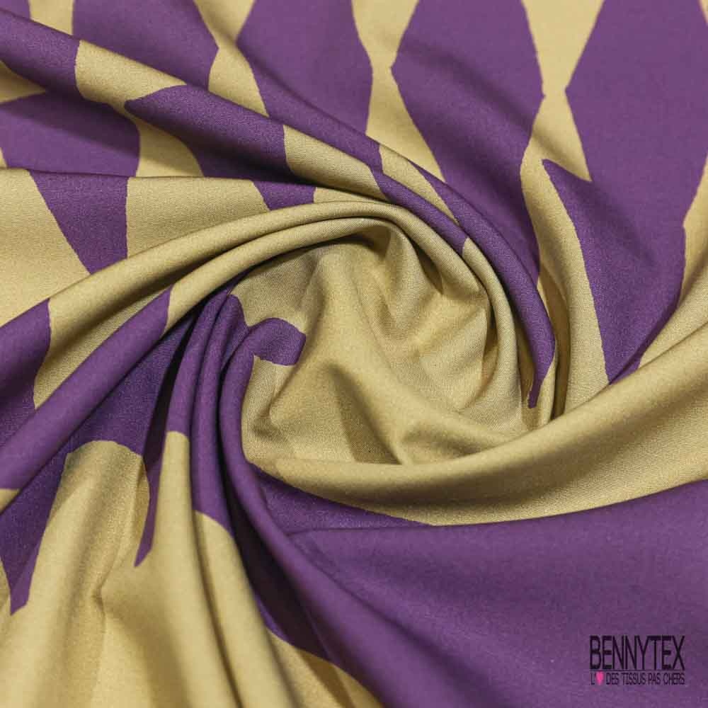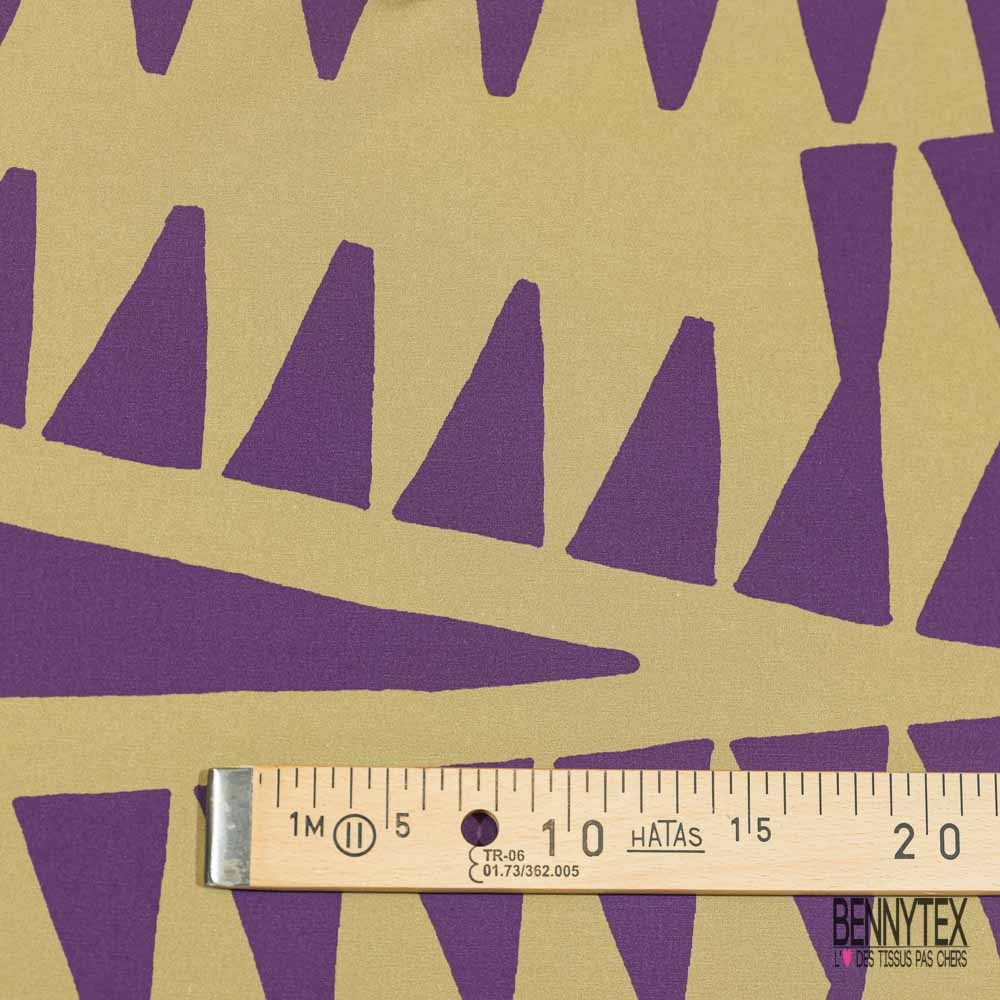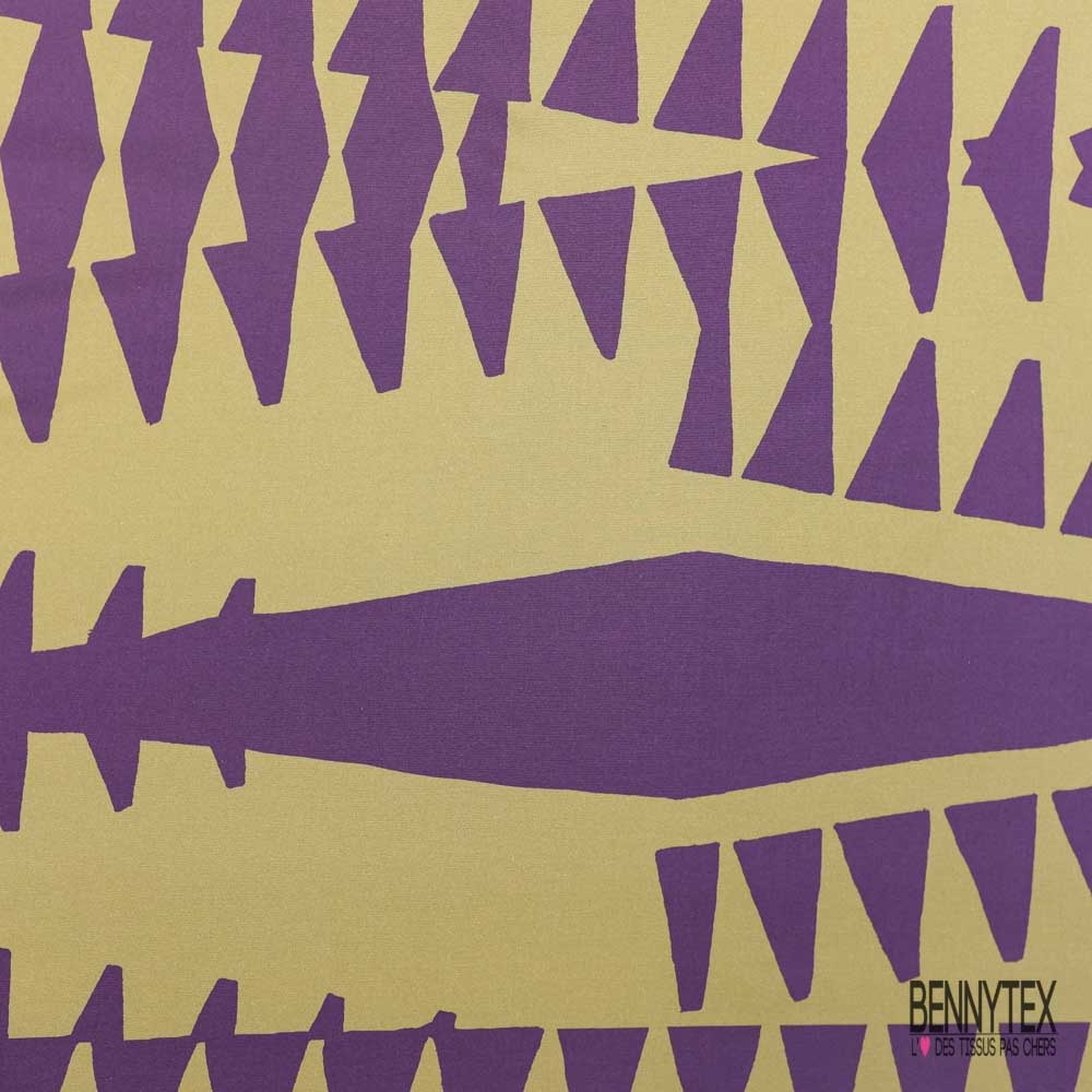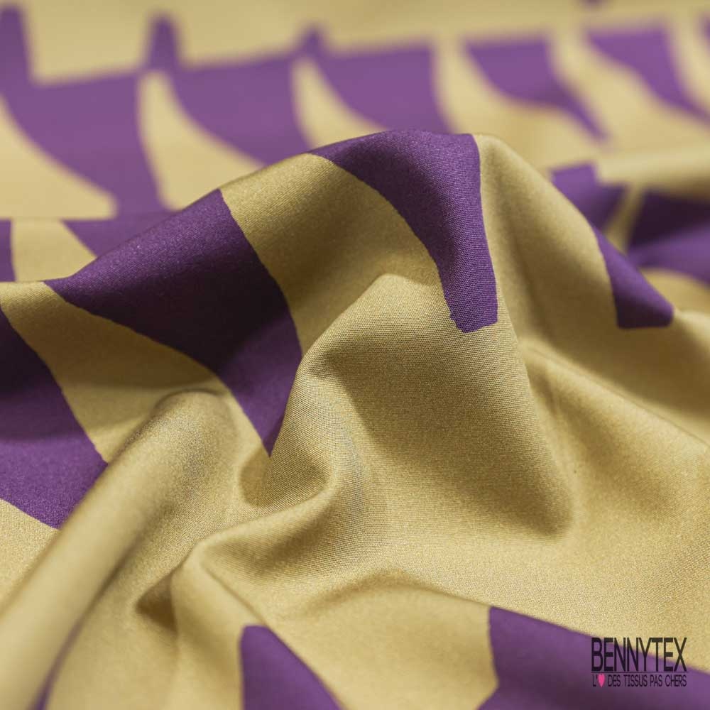 Popeline coton élasthanne digital imprimé géométrique abstrait violet taupe foncé