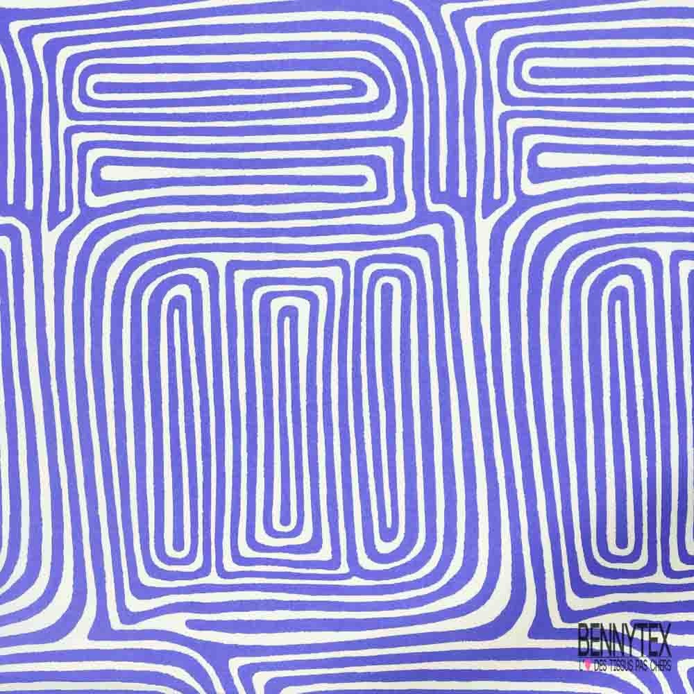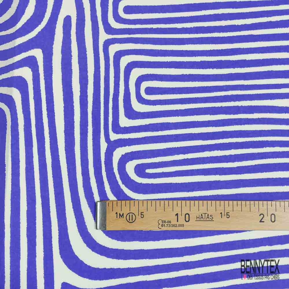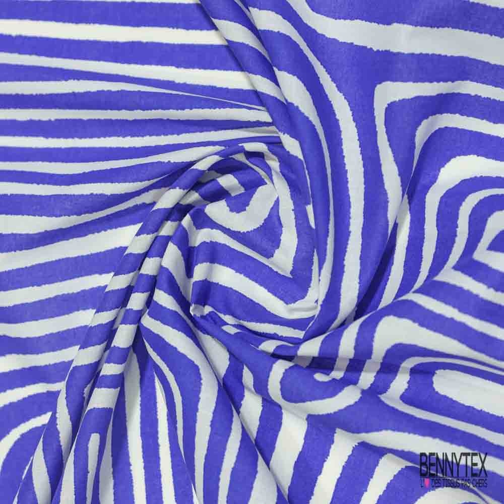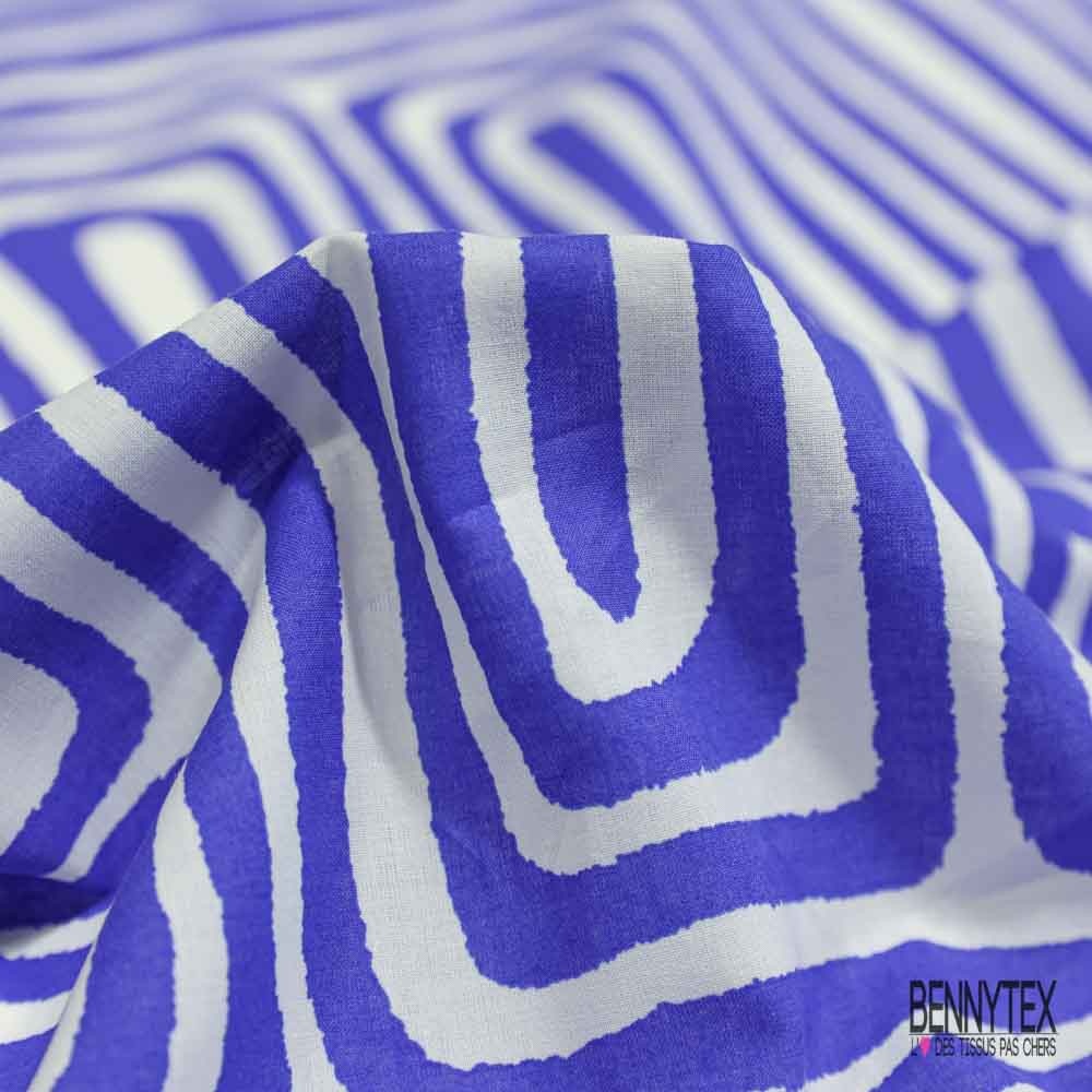 Voile de coton digital élasthanne imprimé grande empreinte digitale blanc optique bleu roi
