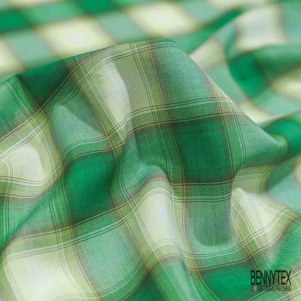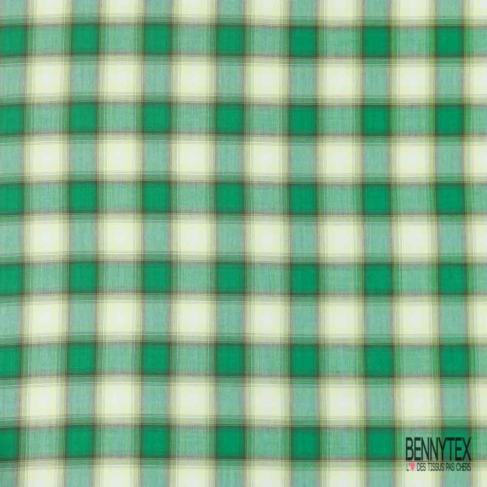 Coton tissé teint imprimé tartan vert anglais ocre blanc cassé