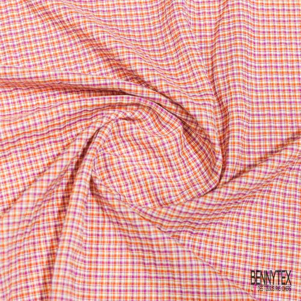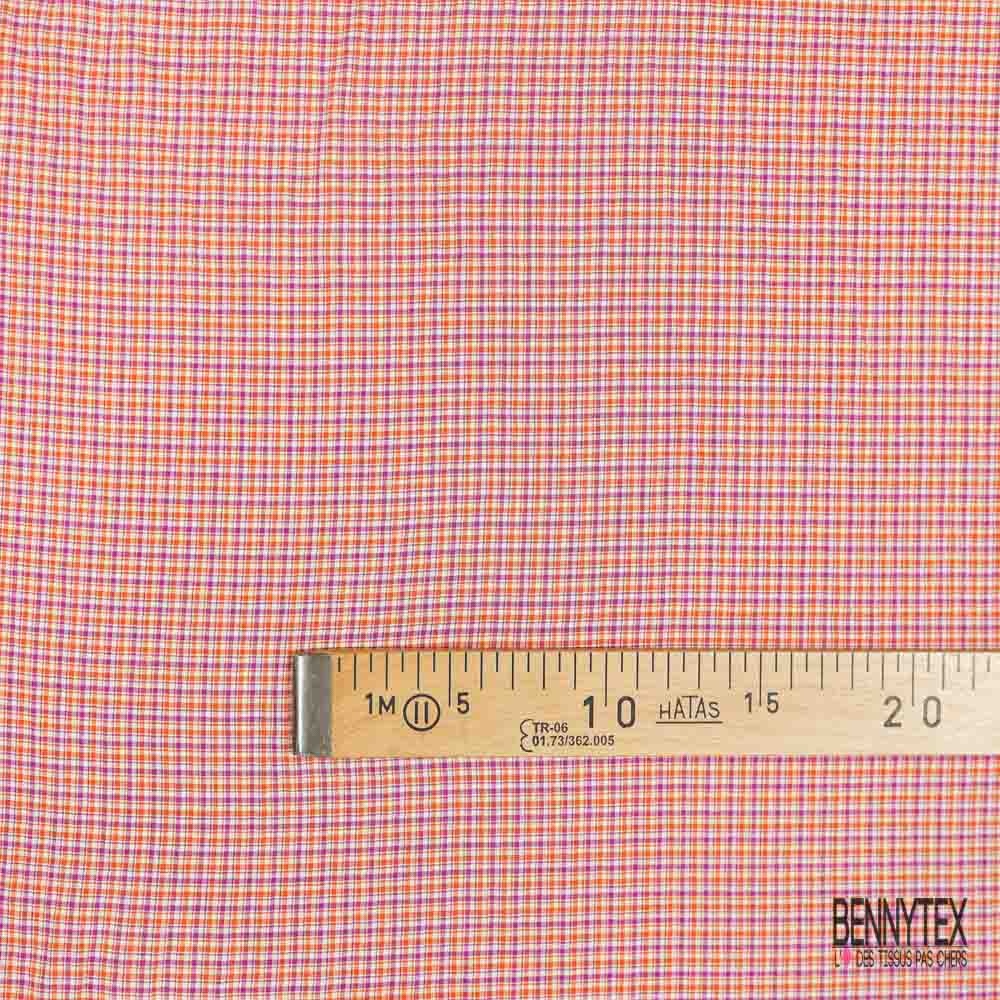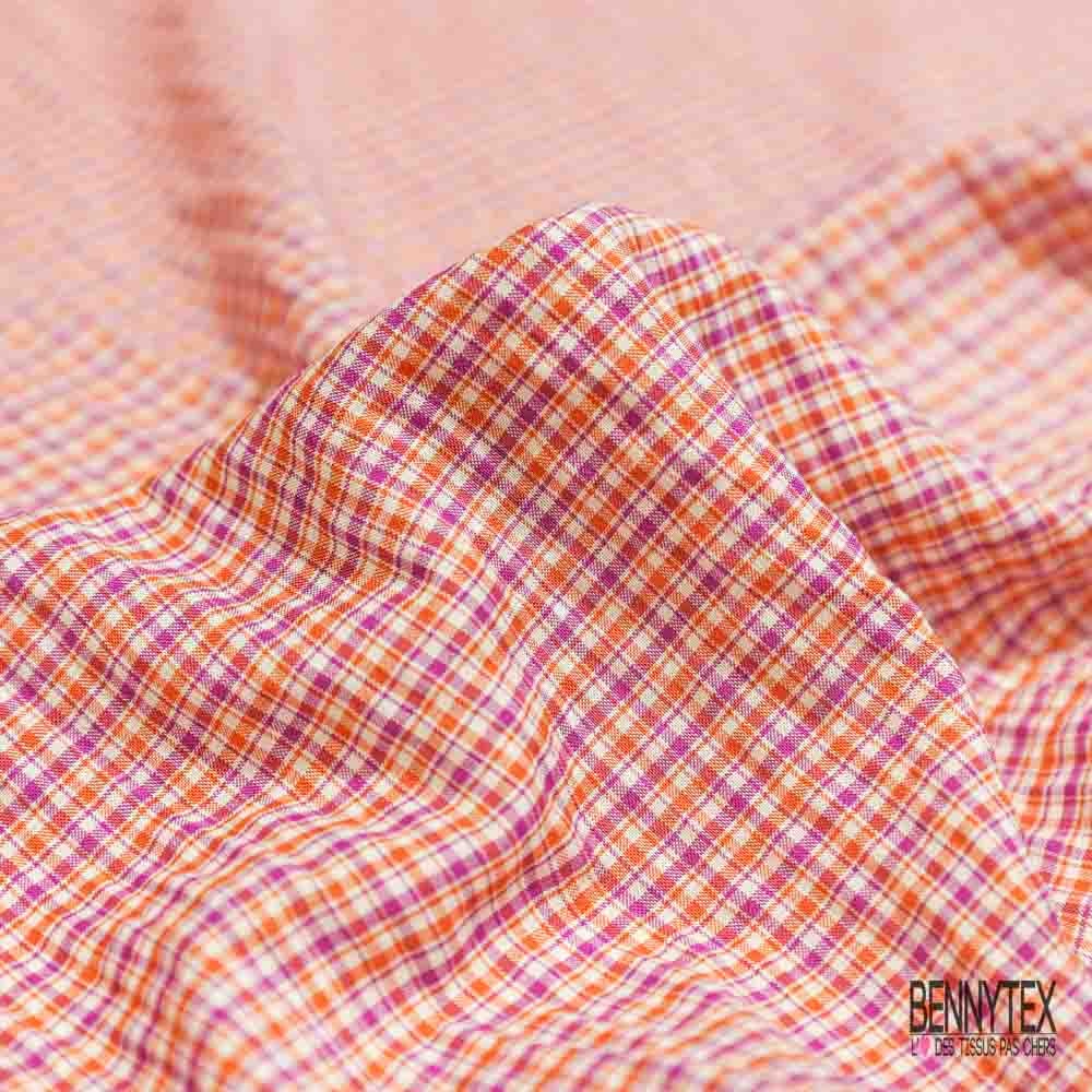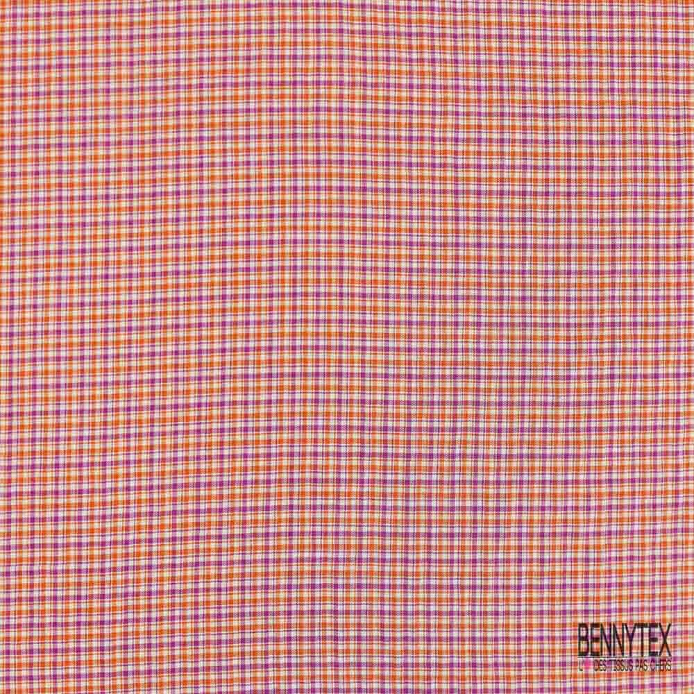 Coton viscose froissé élasthanne motif mini carreau mandarine violine blanc discret