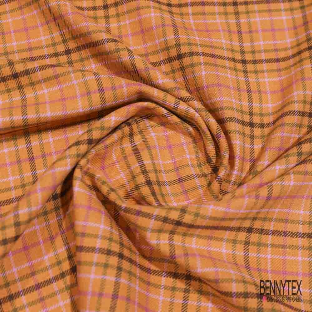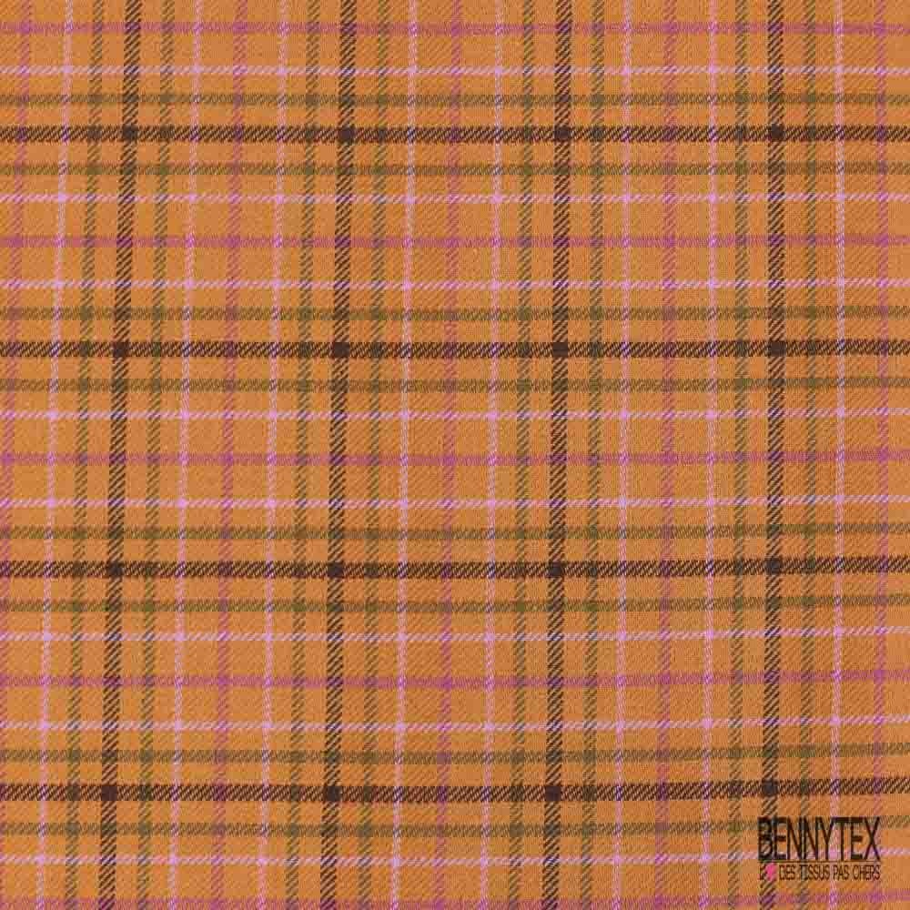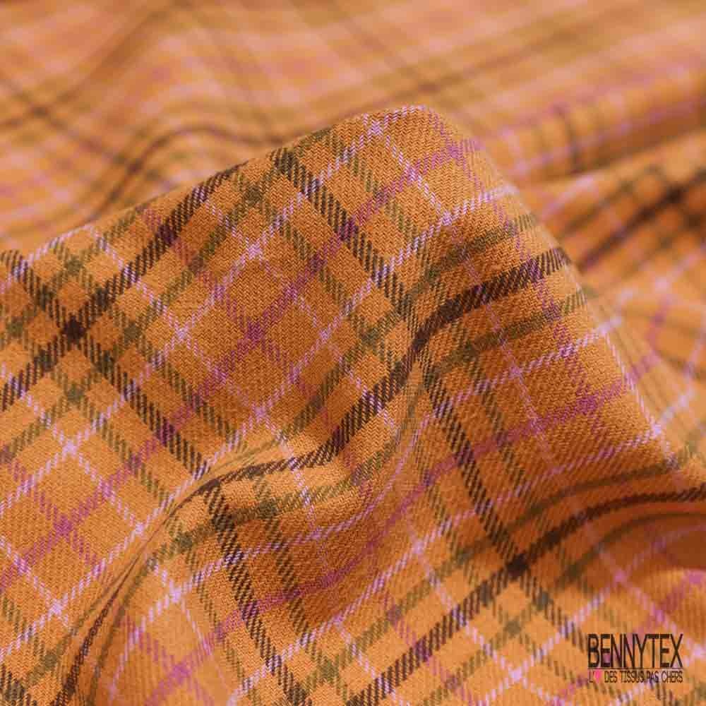 Coton gratté tissé teint motif carreau violine rosée du matin taupe choco fond abricot givré