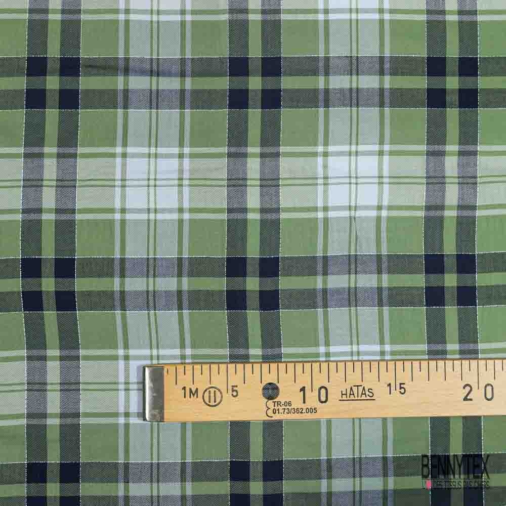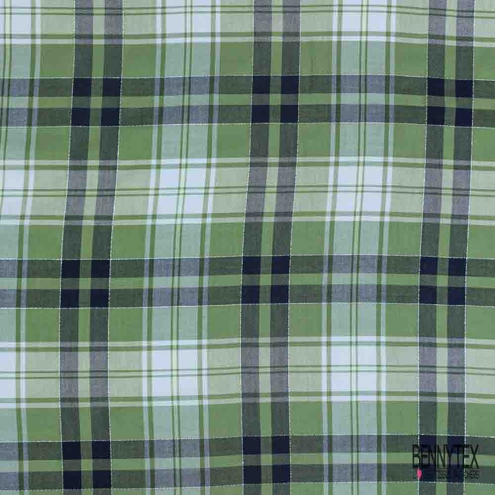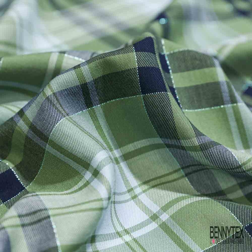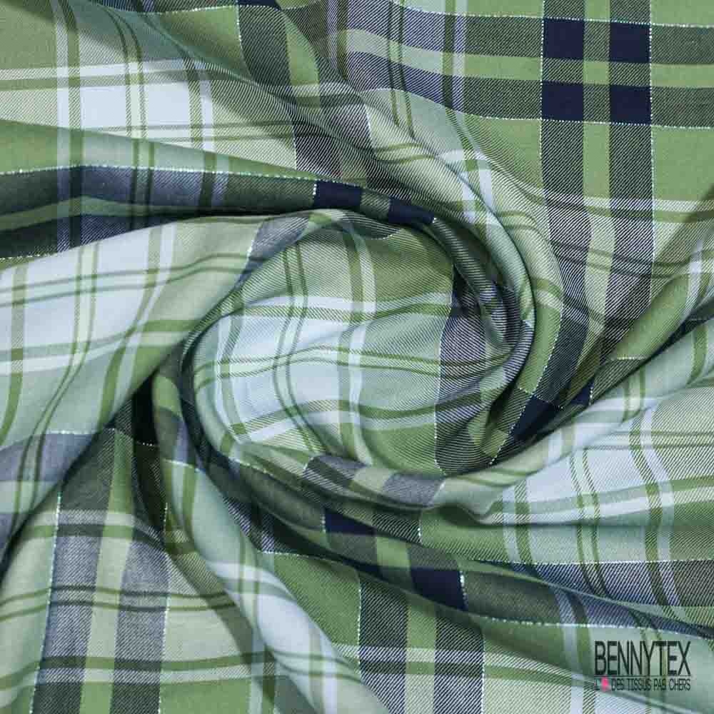 Coton viscose tissé teint tartan bleu nuit tilleul bleu ciel pastel lurex ciel