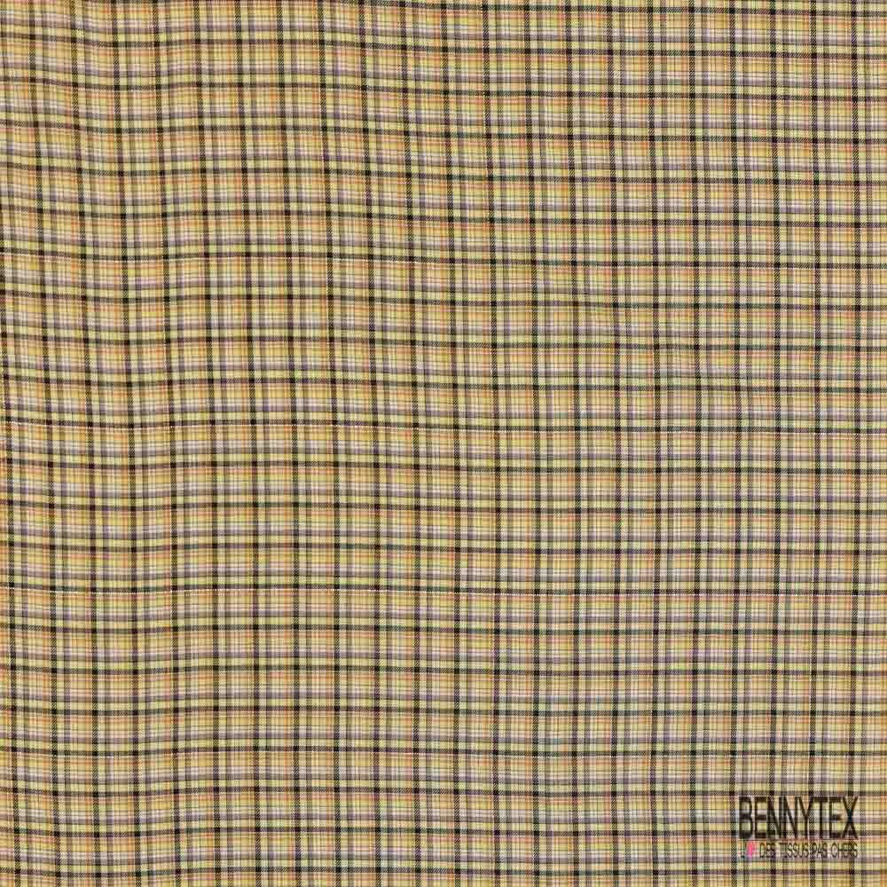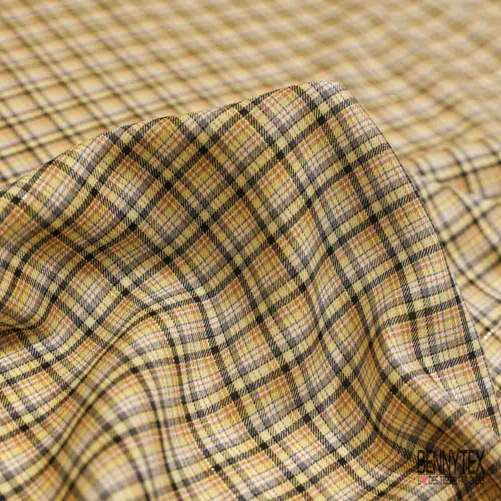 Coton viscose tissé teint petit tartan gris noir vanille blanc discret ocre lurex or