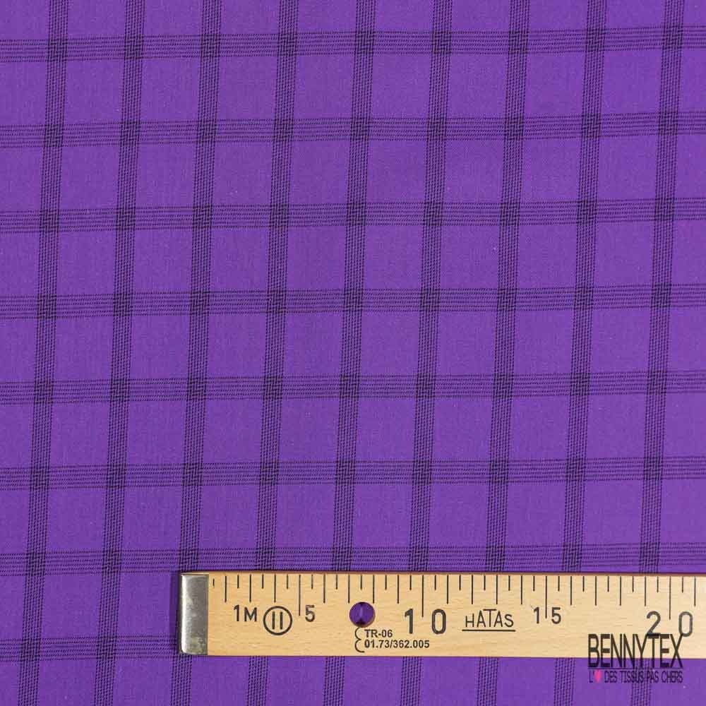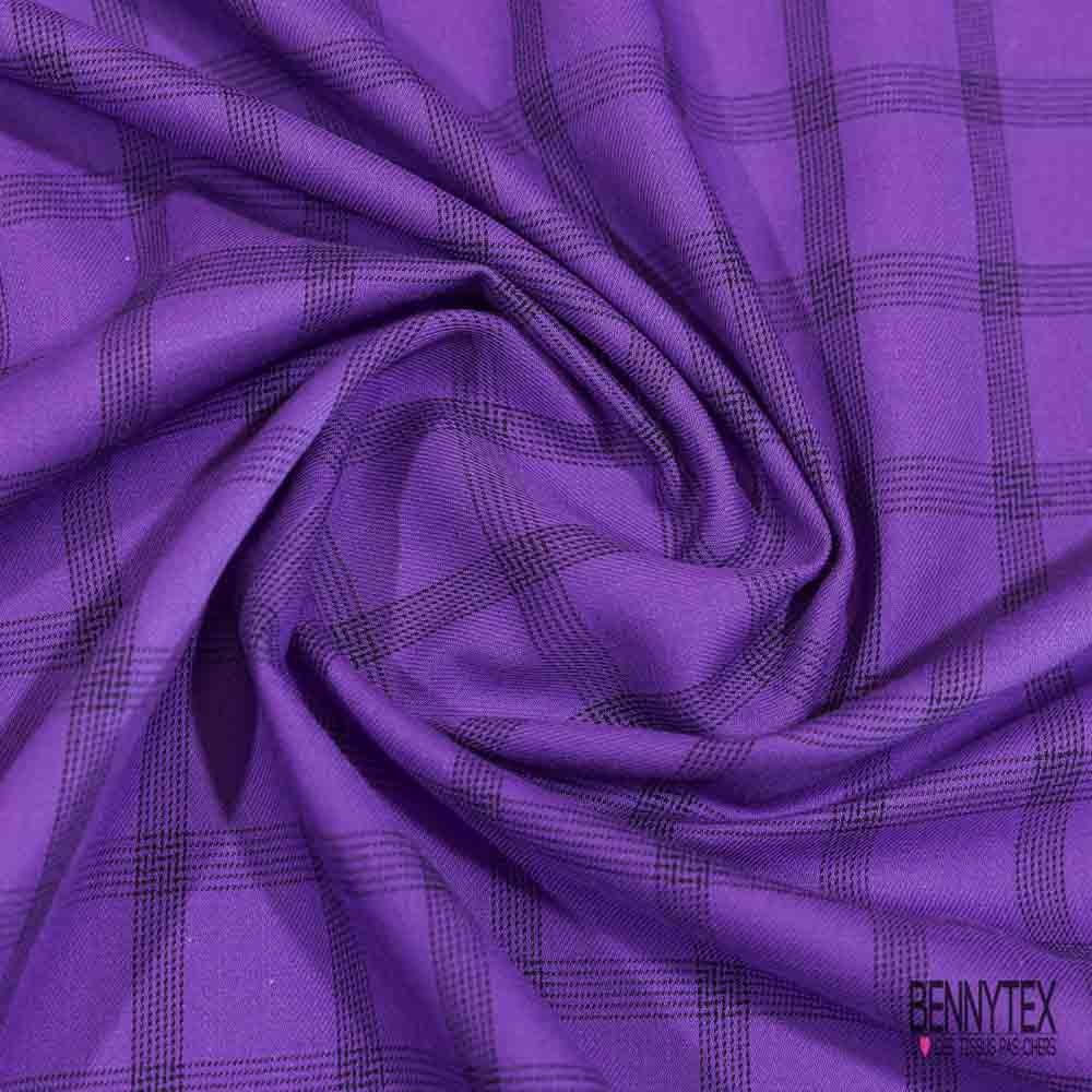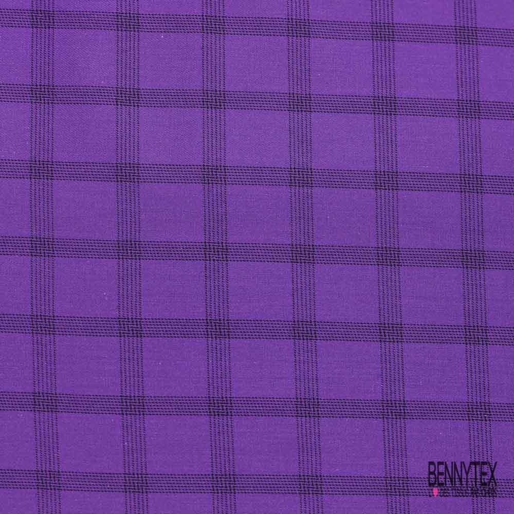 Coton viscose tissé teint élasthanne tartan noir fond violet