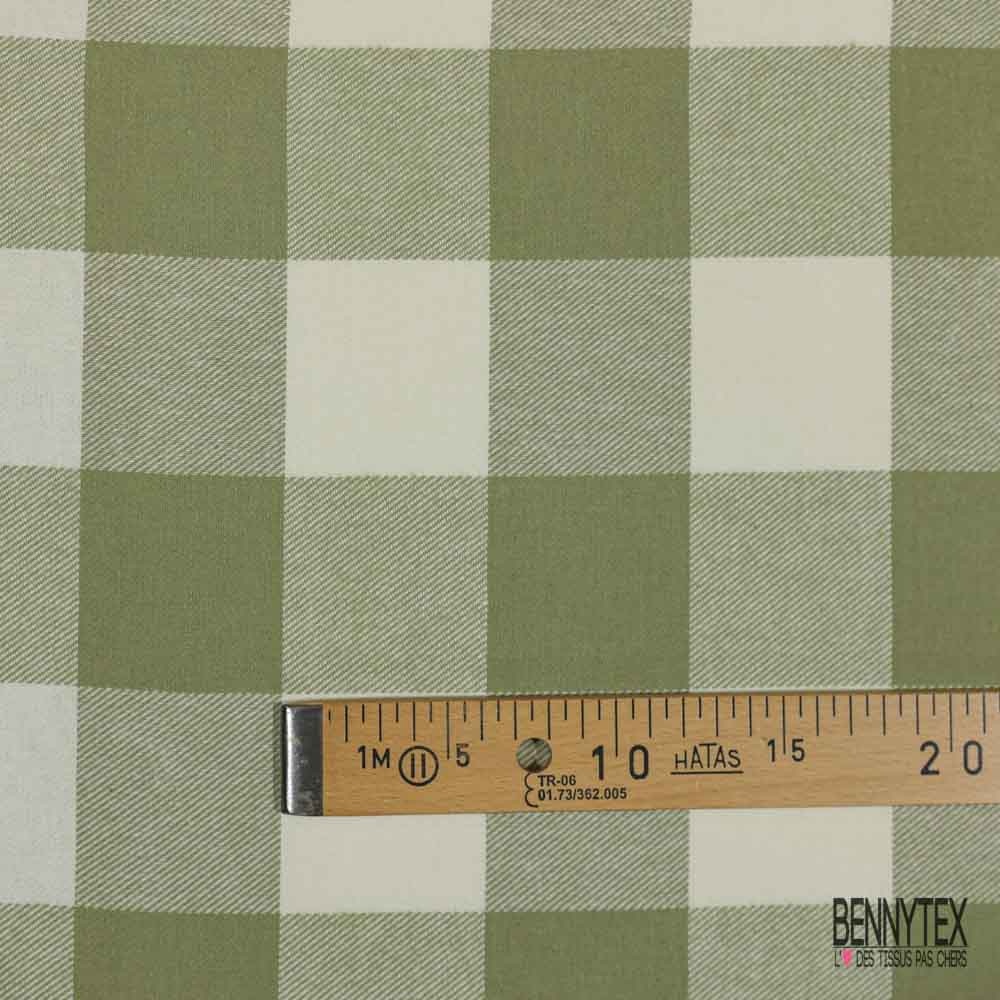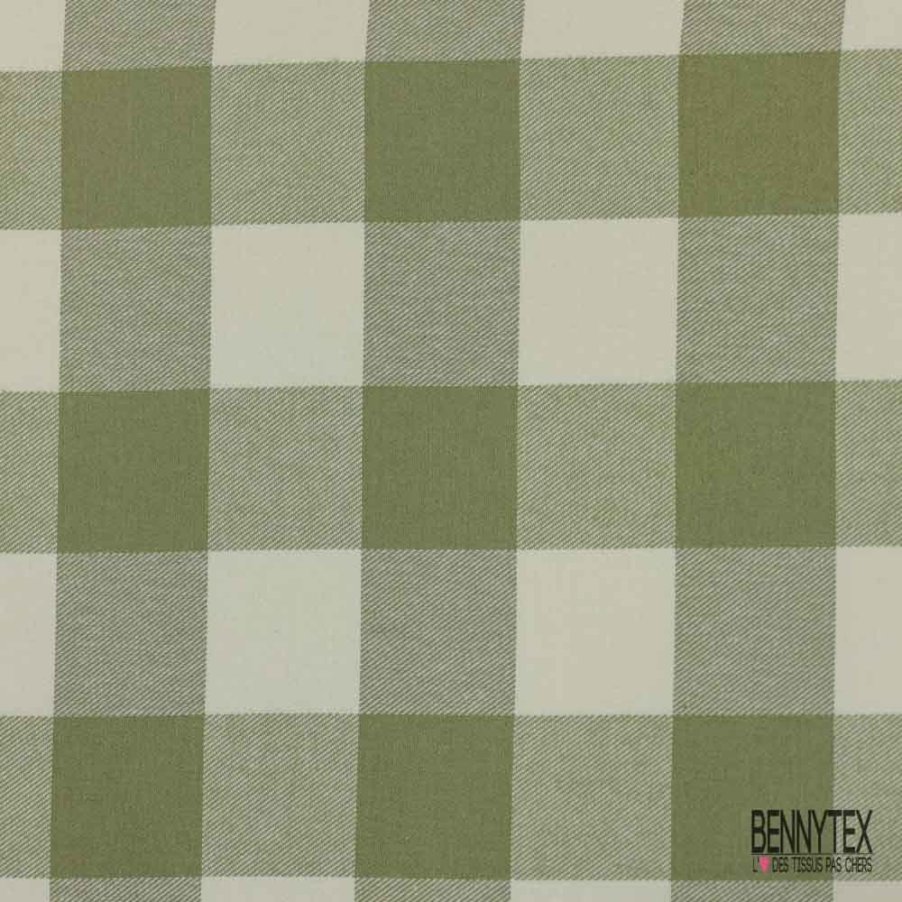 Le Coton viscose gratté chemise bûcheron tissé teint grand carreau tilleul blanc cassé est une matière Douce et fluide, avec une sensation de fraîcheur et de légèreté au toucher ainsi que au porter.