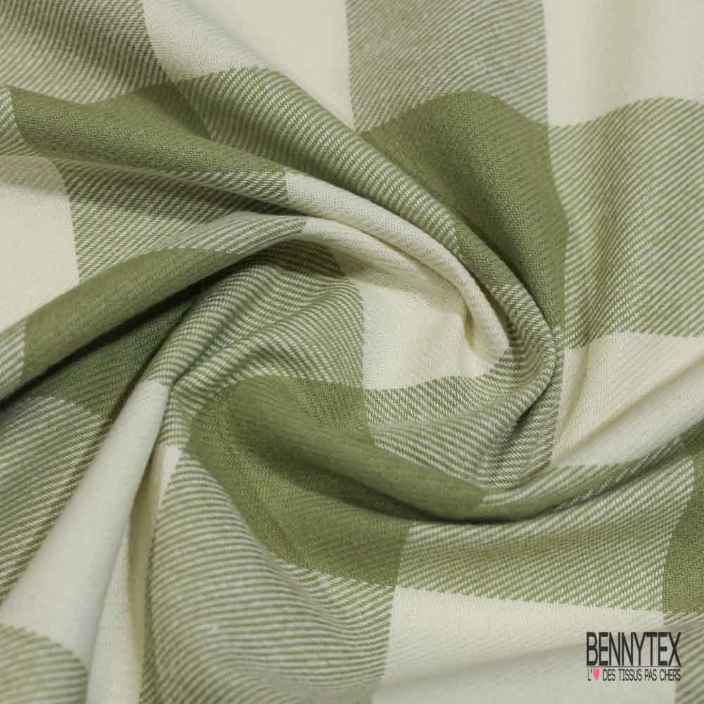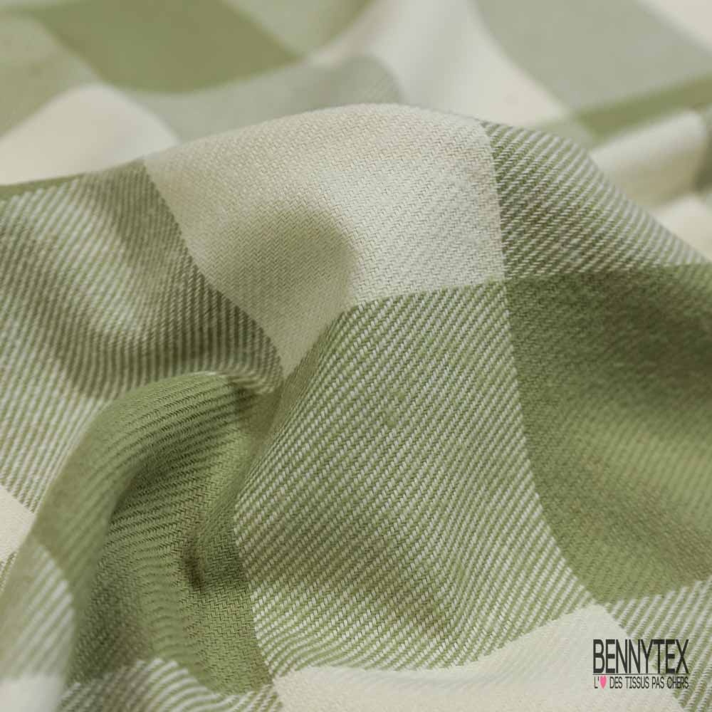 Coton viscose gratté chemise bûcheron tissé teint grand carreau tilleul blanc cassé