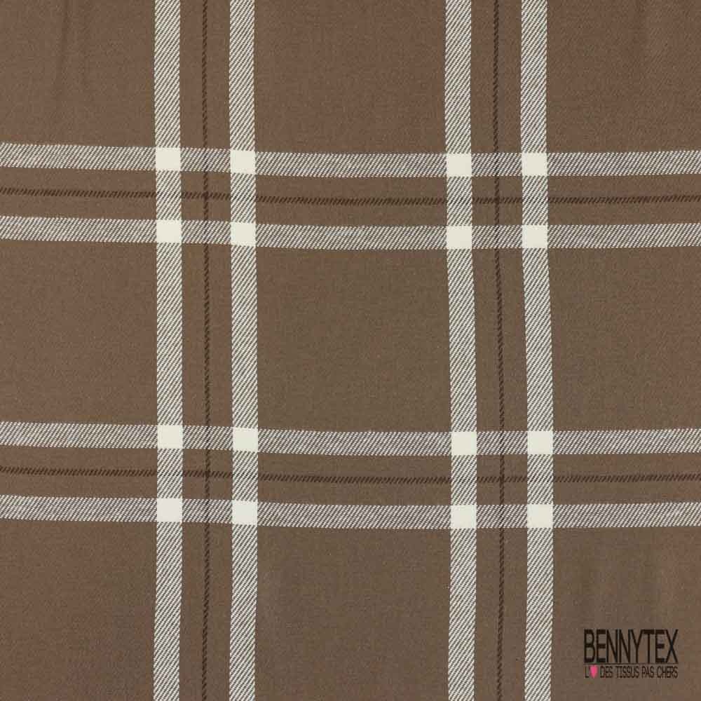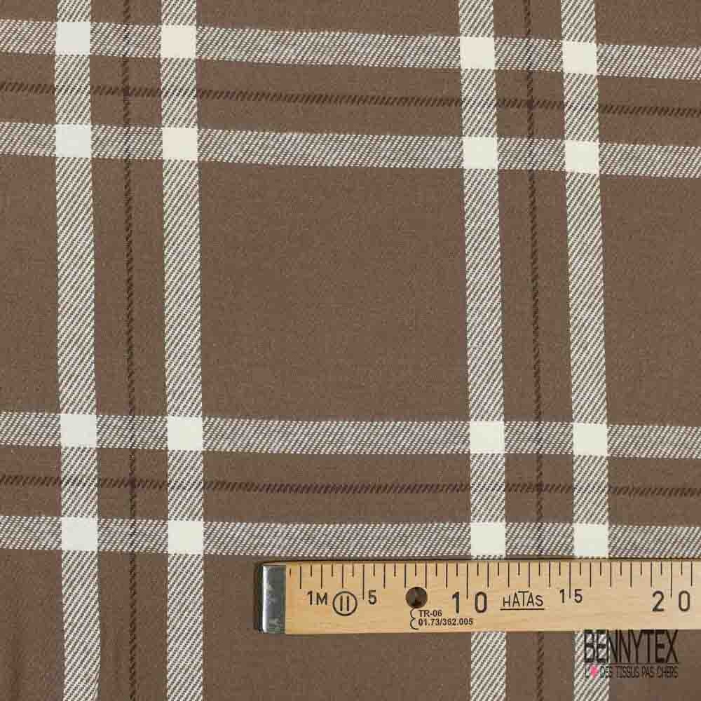 Le Coton viscose gratté chemise bûcheron tissé teint grand carreau taupe brun blanc cassé est une matière Douce et fluide, avec une sensation de fraîcheur et de légèreté au toucher ainsi que au porter.