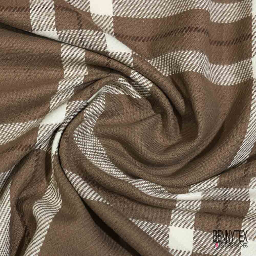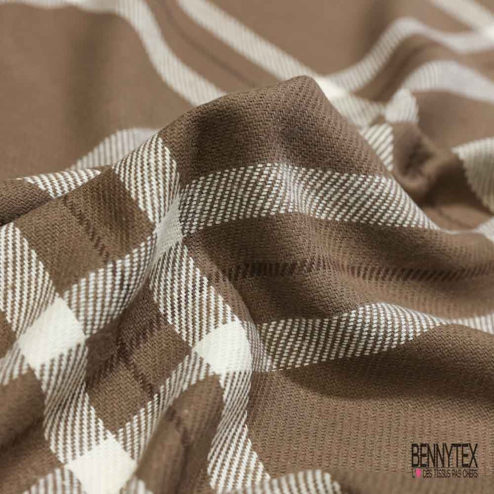 Coton viscose gratté chemise bûcheron tissé teint grand carreau taupe brun blanc cassé