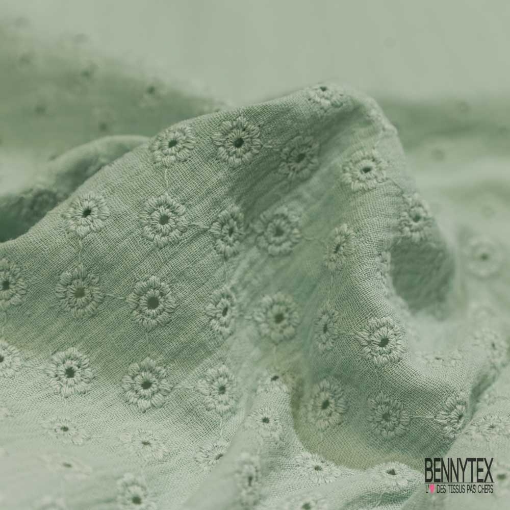 La gaze de coton broderie anglaise amande pastel est un tissu 100% coton léger, doux et aérien avec un beau drapé.