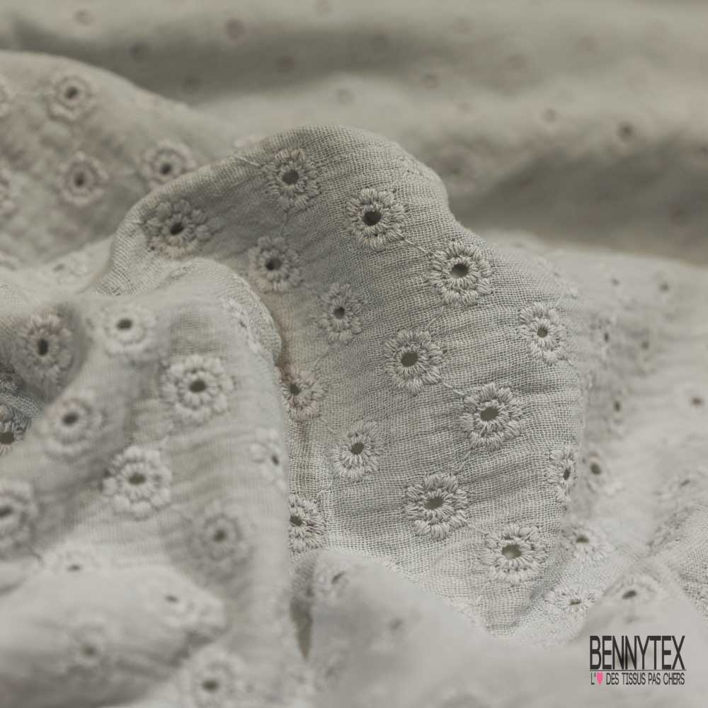 La gaze de coton broderie anglaise gris perle est un tissu 100% coton léger, doux et aérien avec un beau drapé.