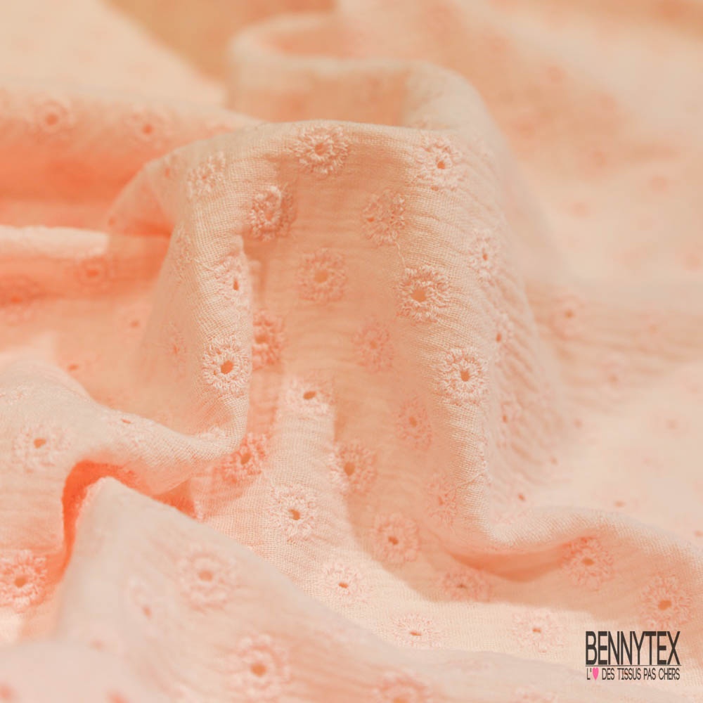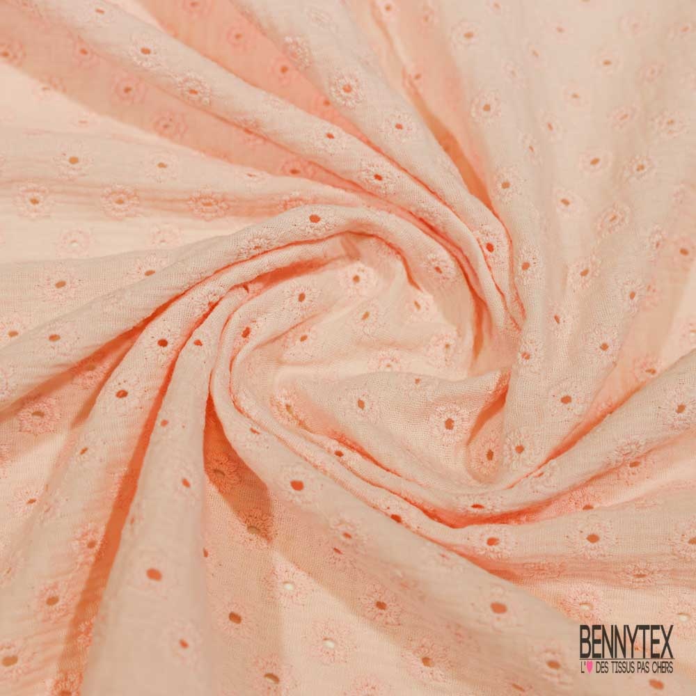 La gaze de coton broderie anglaise rose pastel est un tissu 100% coton léger, doux et aérien avec un beau drapé.