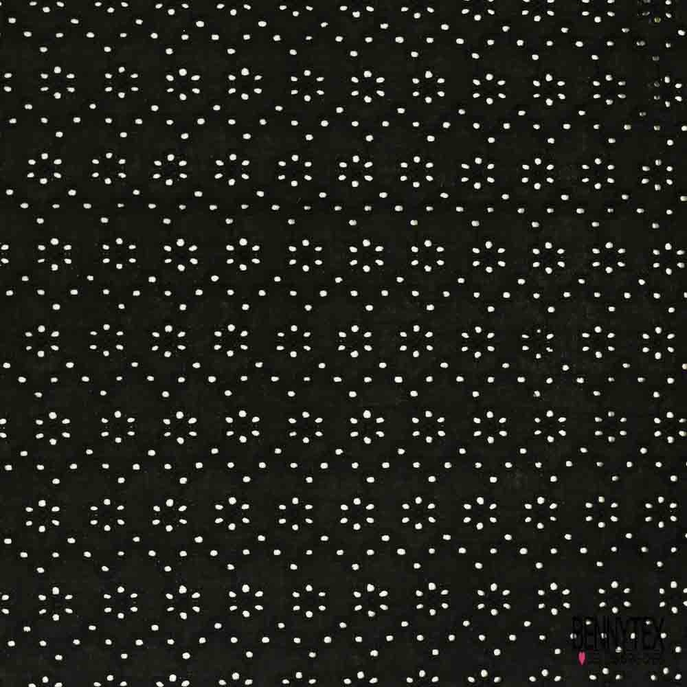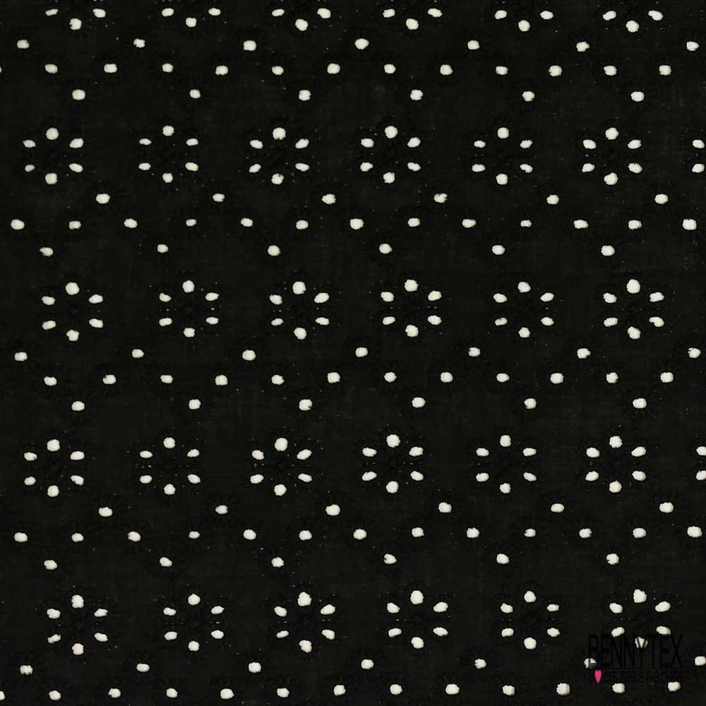Voile de coton broderie anglaise imprimé fleur et sinusoïde noir