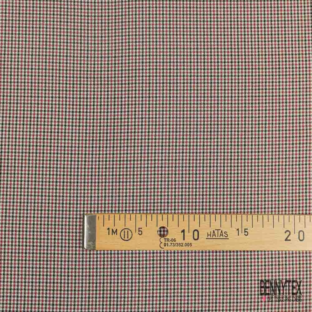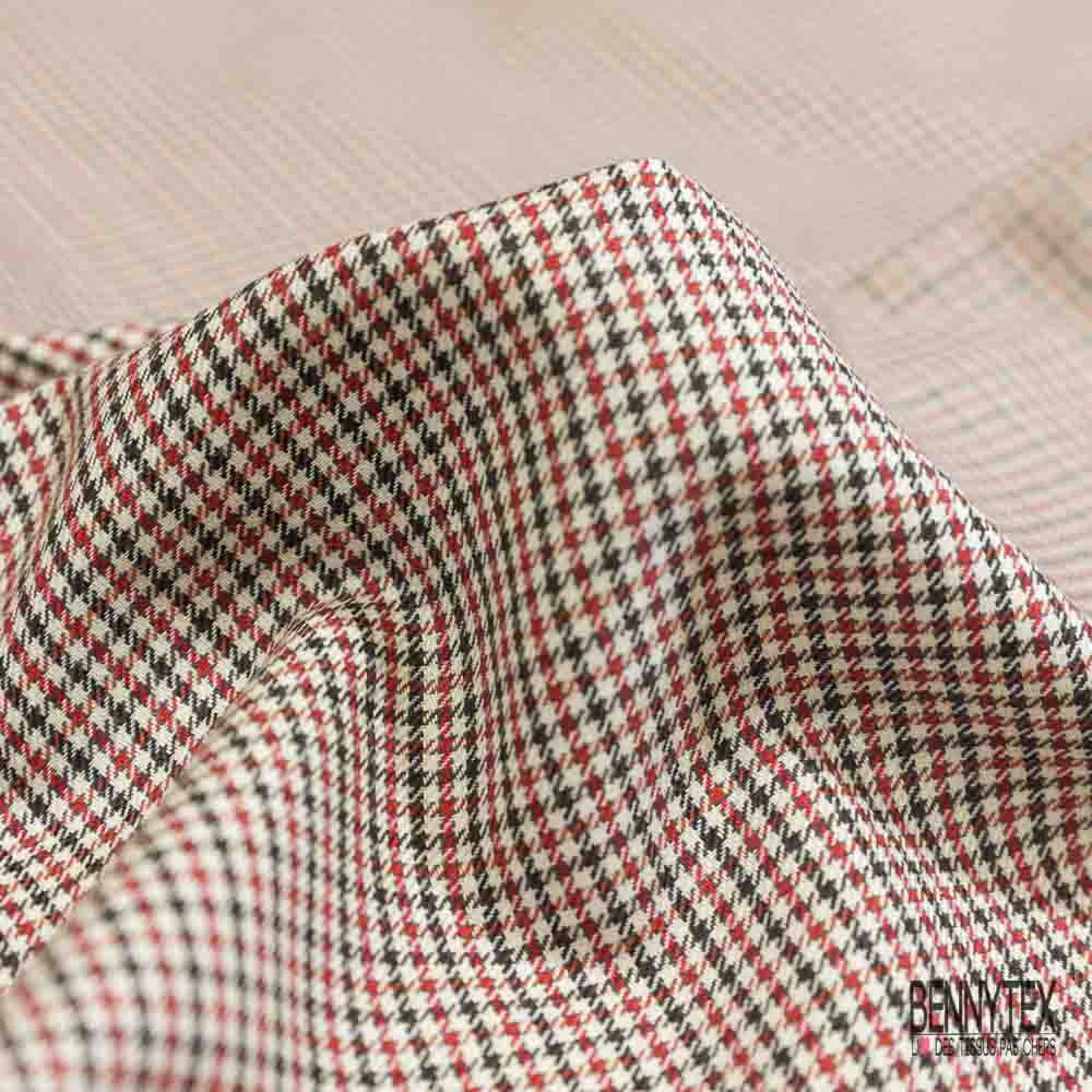 Coton viscose tissé teint pied de puce vintage lie de vin noir blanc discret