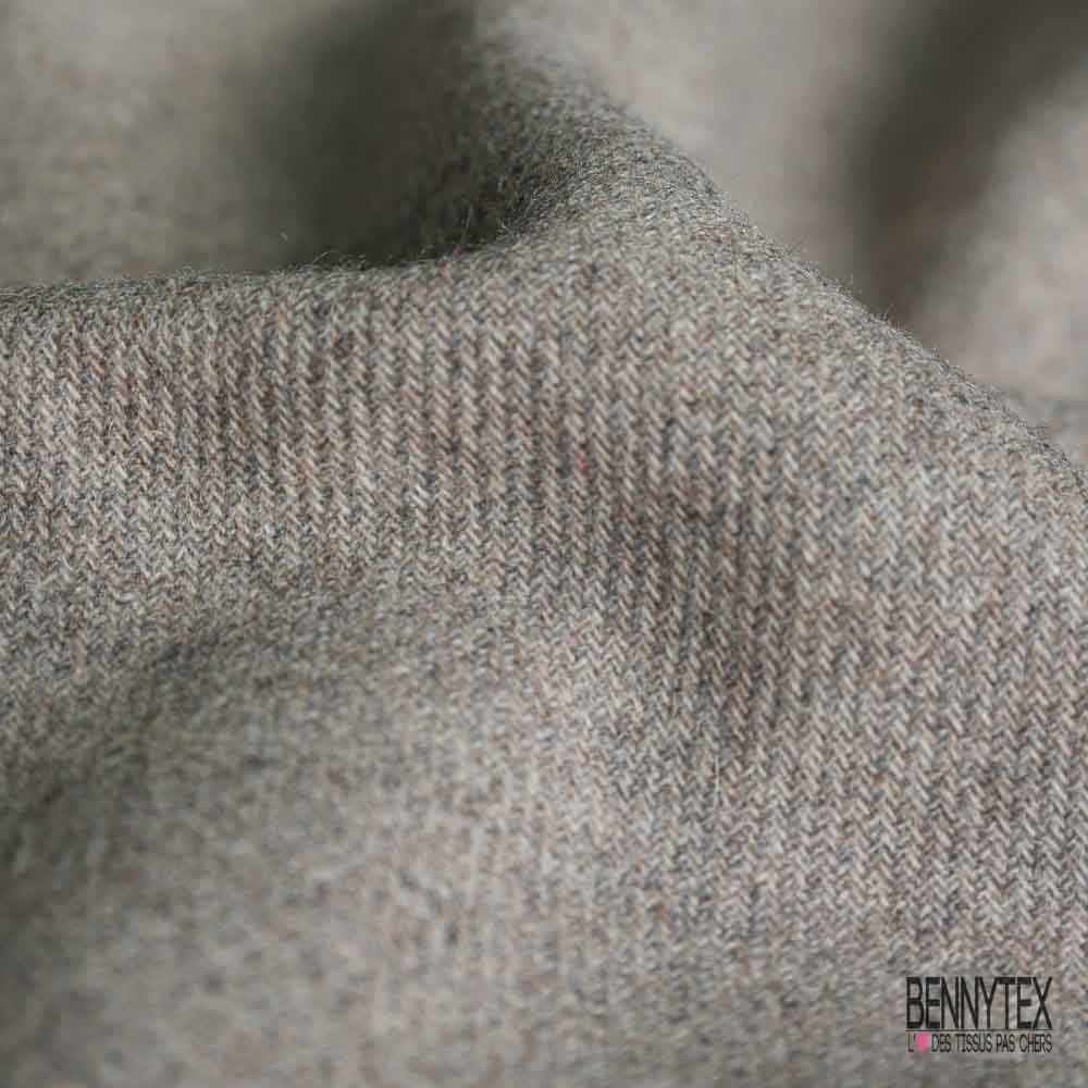 Sergé de laine gratté souple taupe beige chiné
