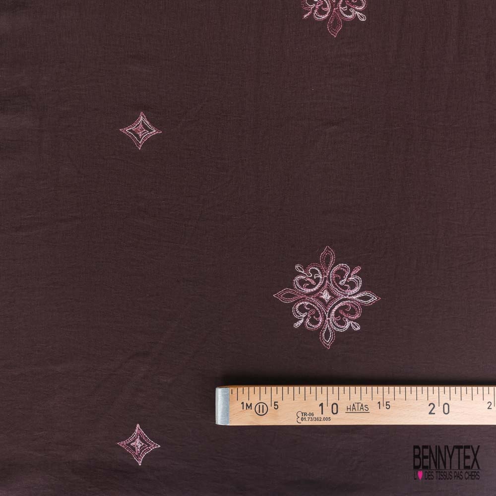Description Motif: voile bison brodé floral camaïeu de rose