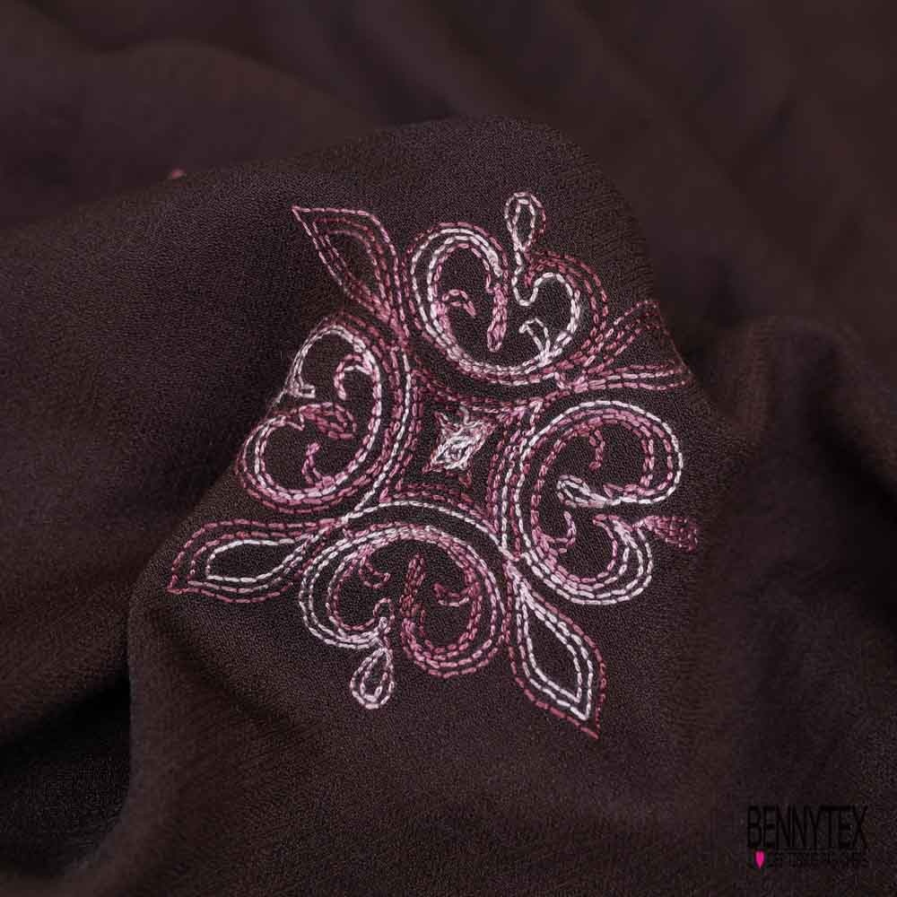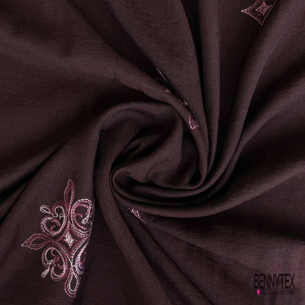 Coupon 3m viscose voile bison brodé floral camaïeu de rose
