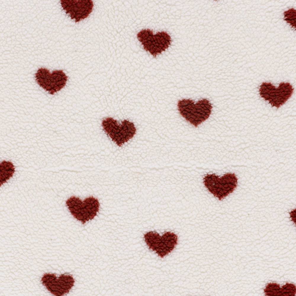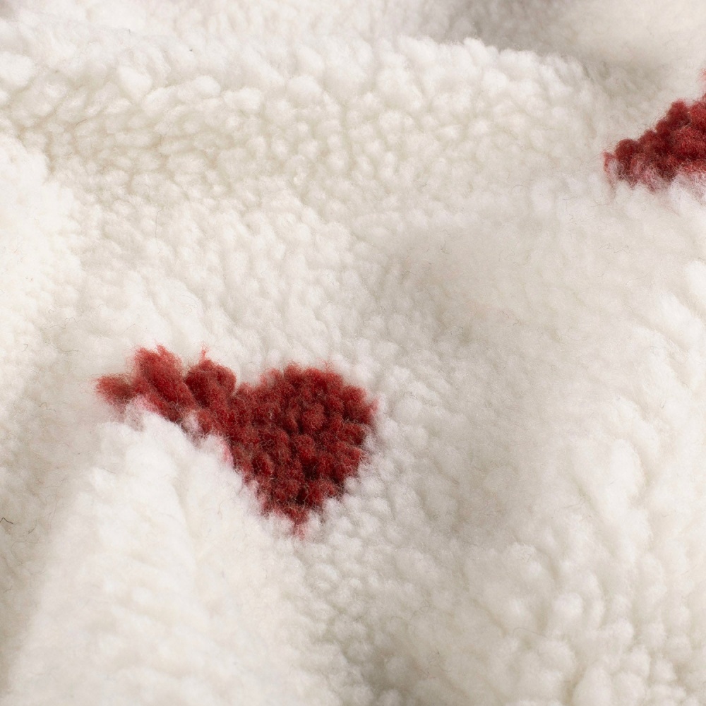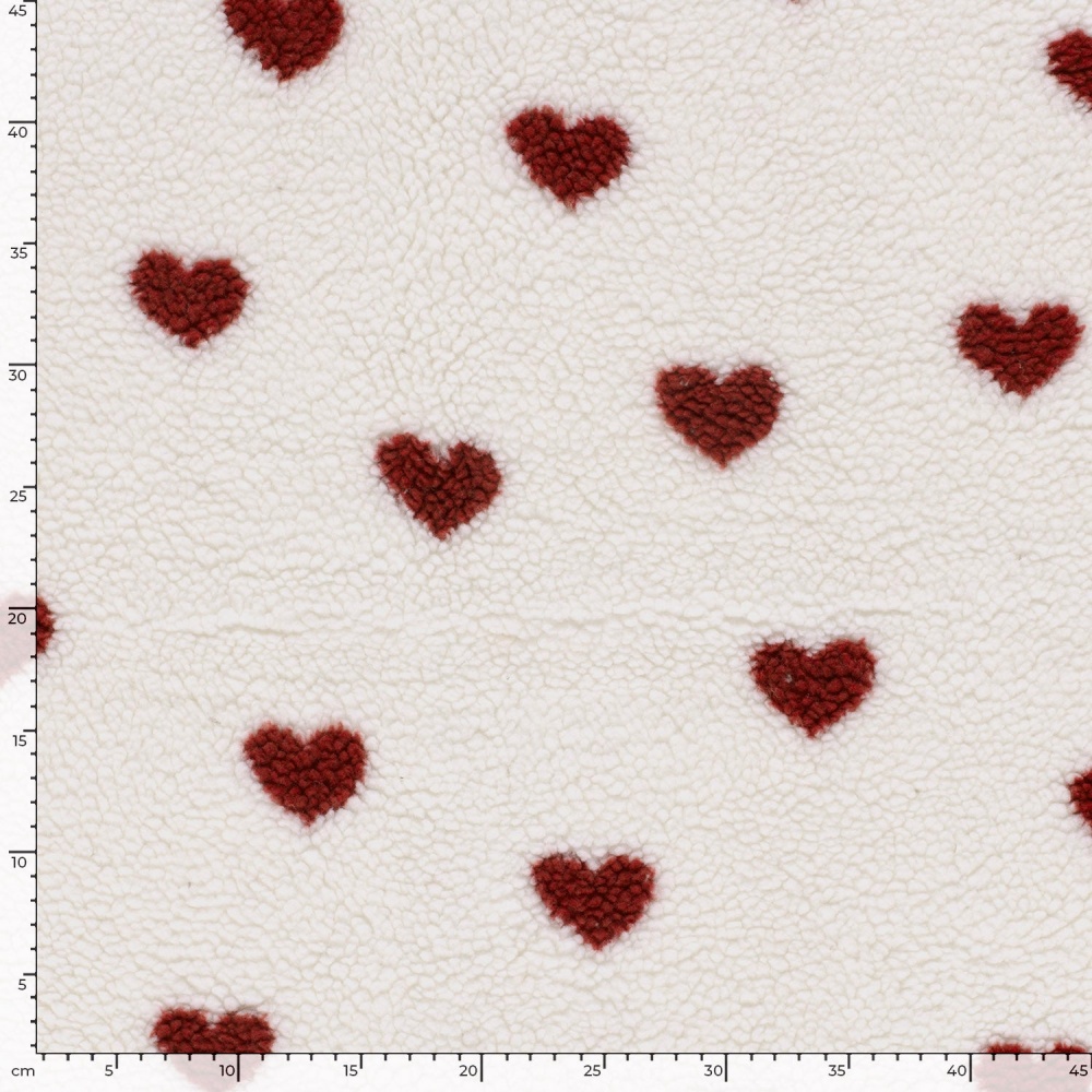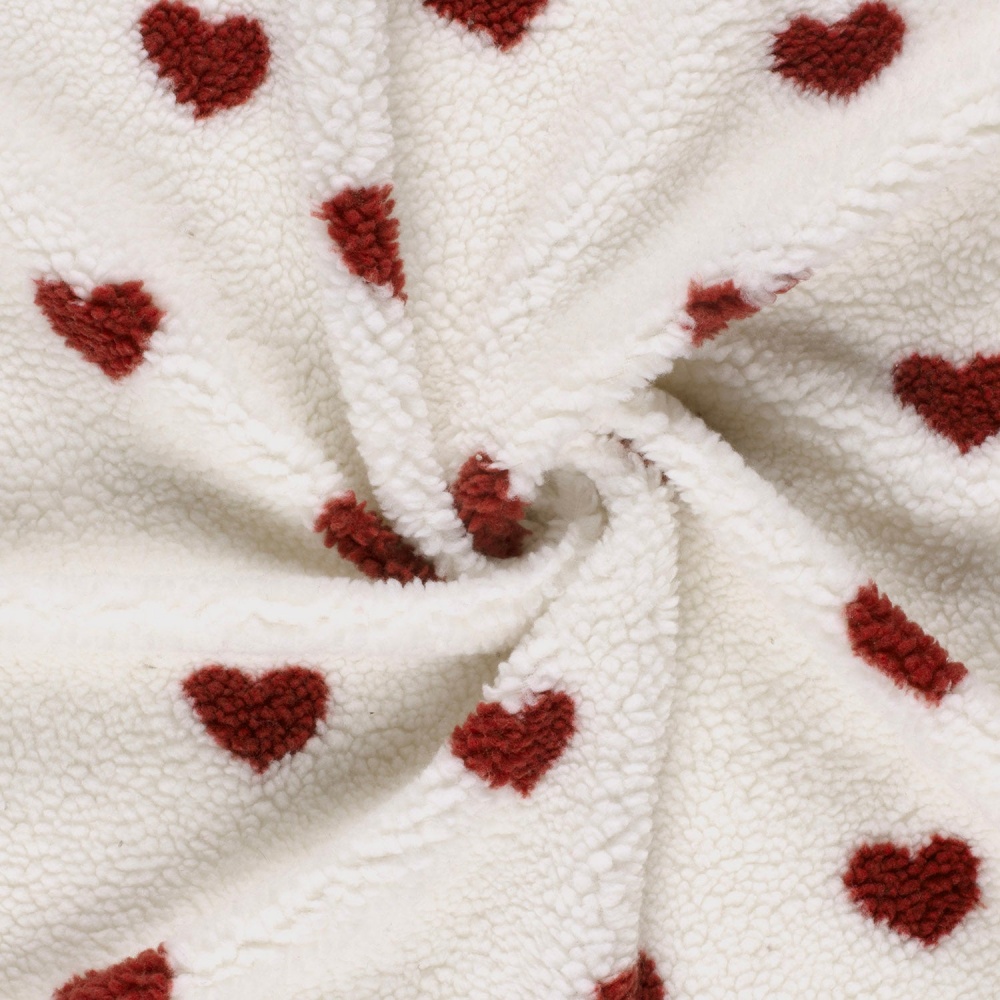 Sherpa Fleece tissu jacquard coeur rouge fond blanc cassé