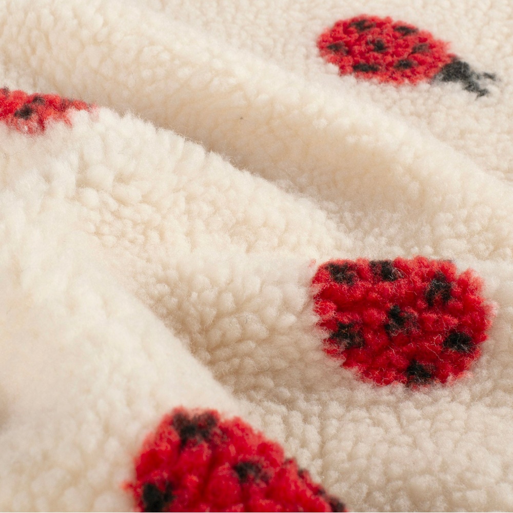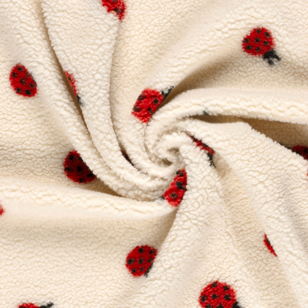 Sherpa Fleece tissu jacquard coccinelle fond crème