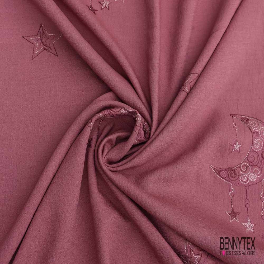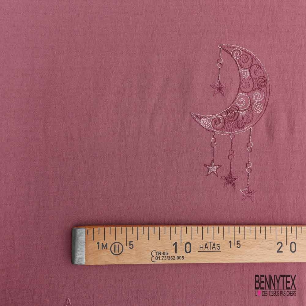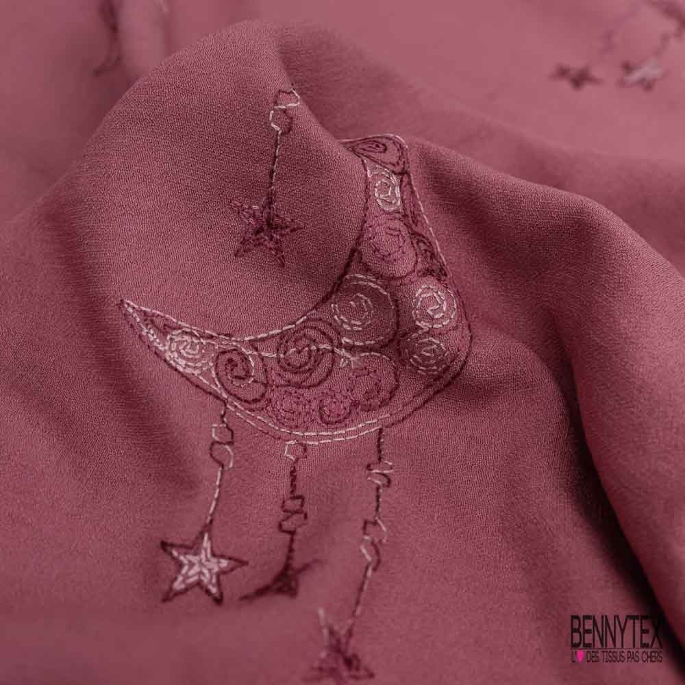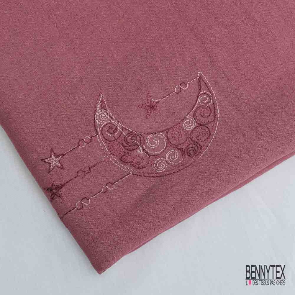 Coupon 3m viscose voile vieux rose brodé lune étoile camaïeu de rose