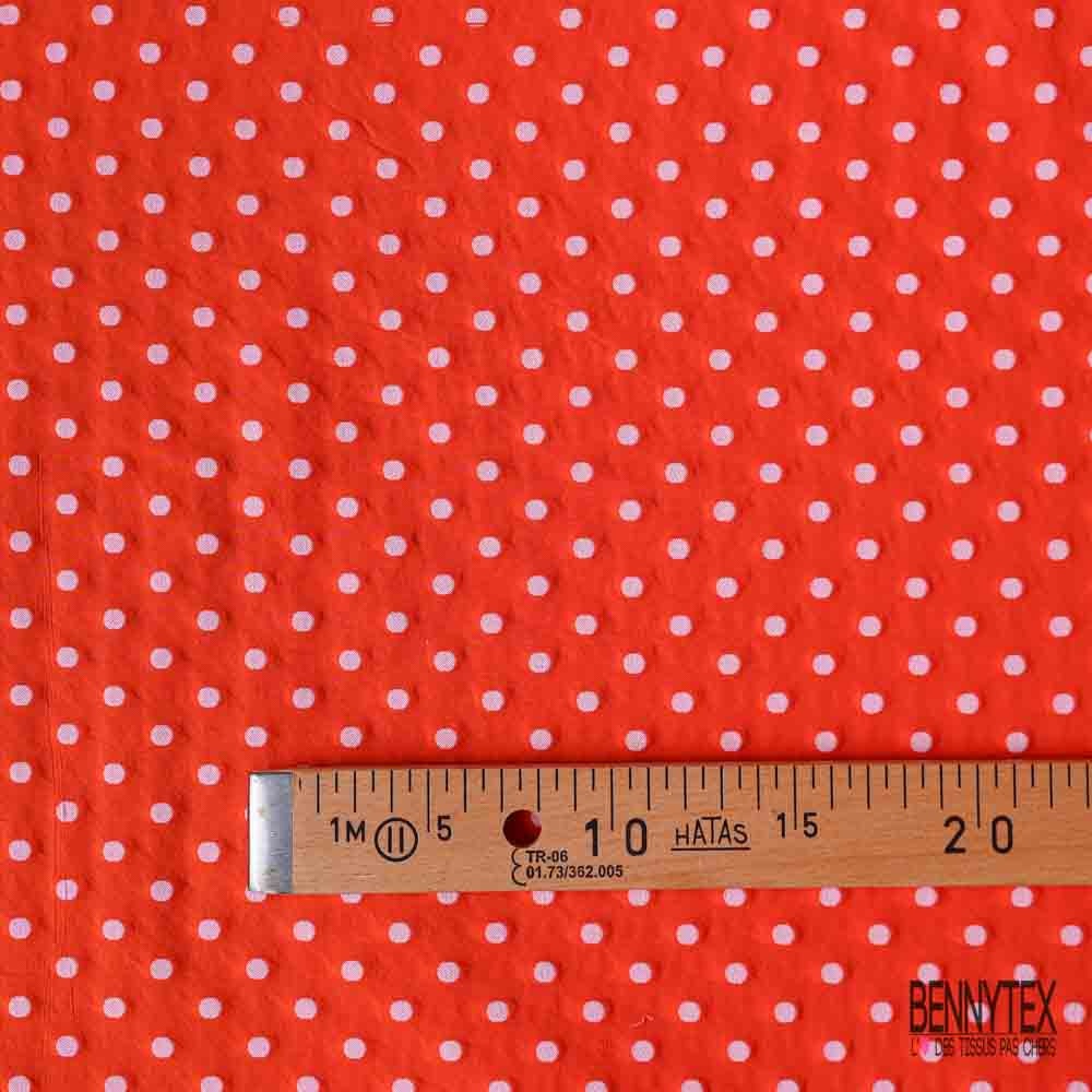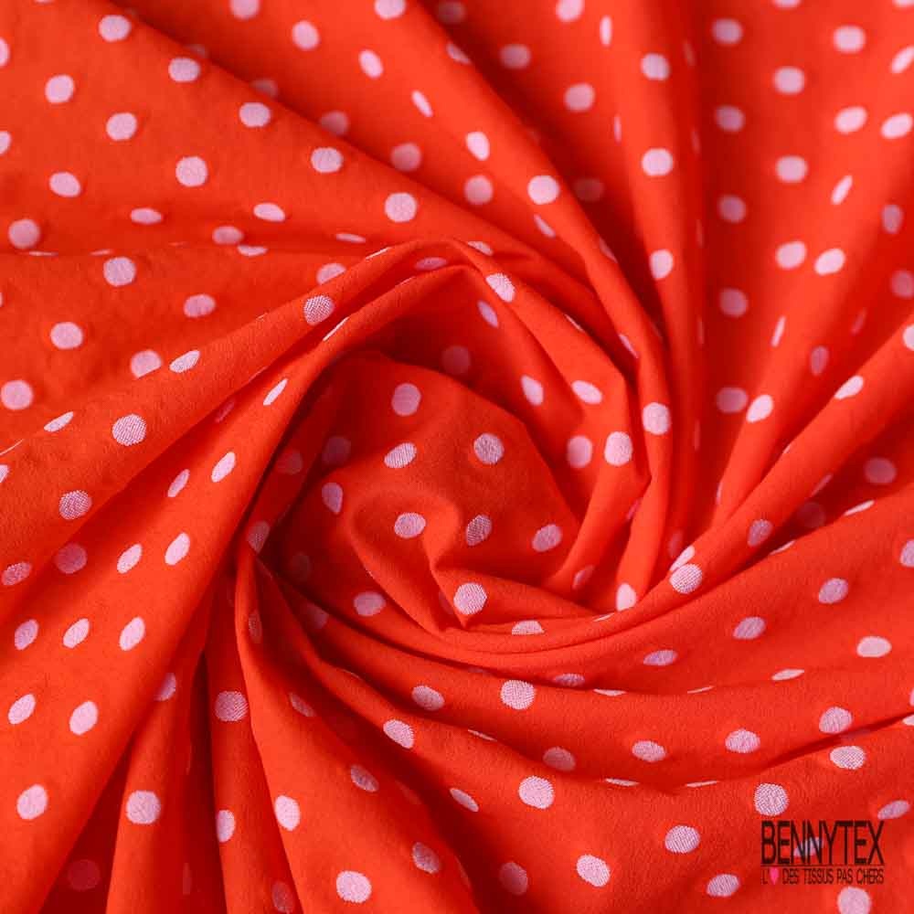 Polyamide élasthanne lingerie motif pois blanc fond orange vif