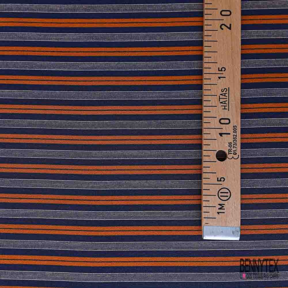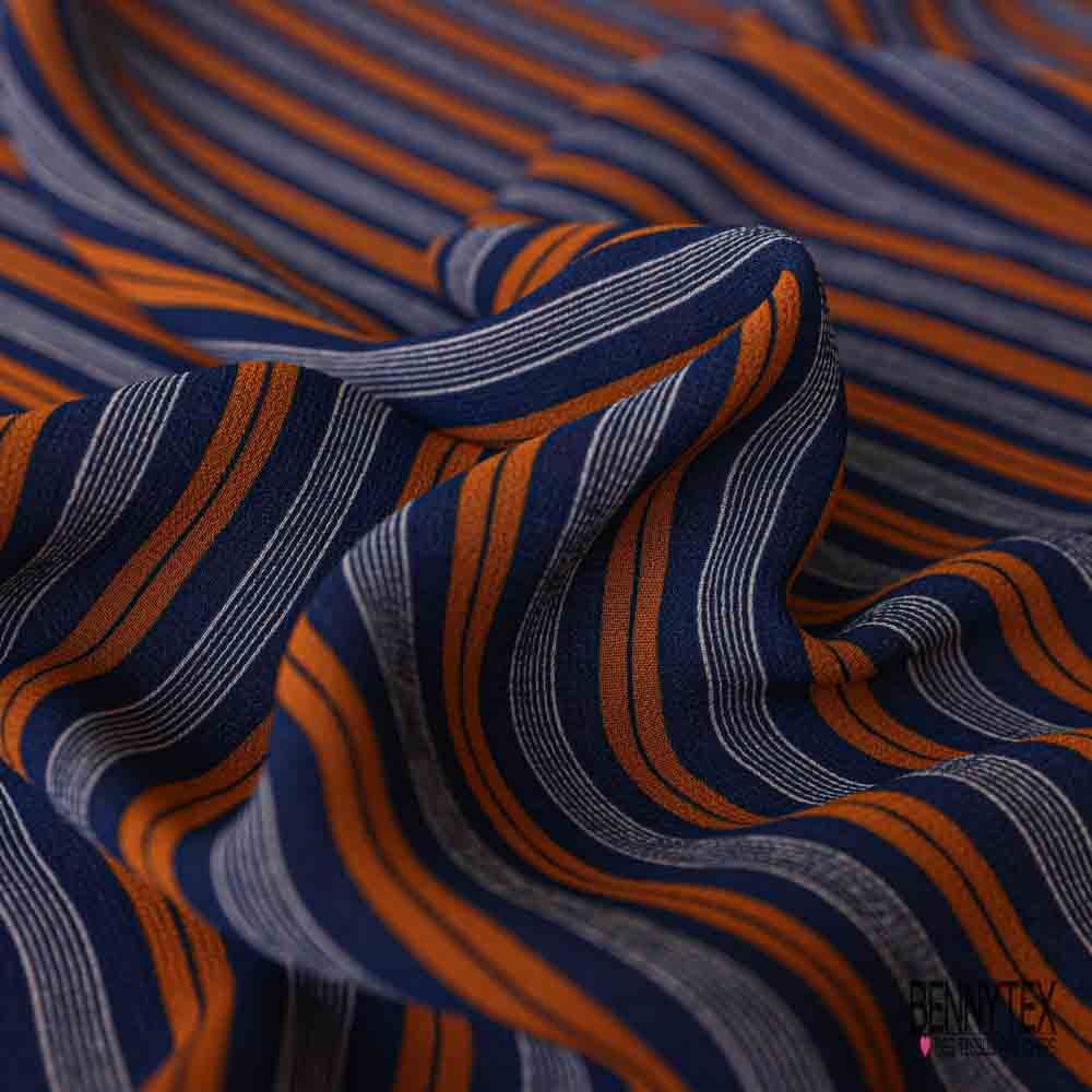 Crêpe viscose digital motif rayure verticale marine blanc optique orange
