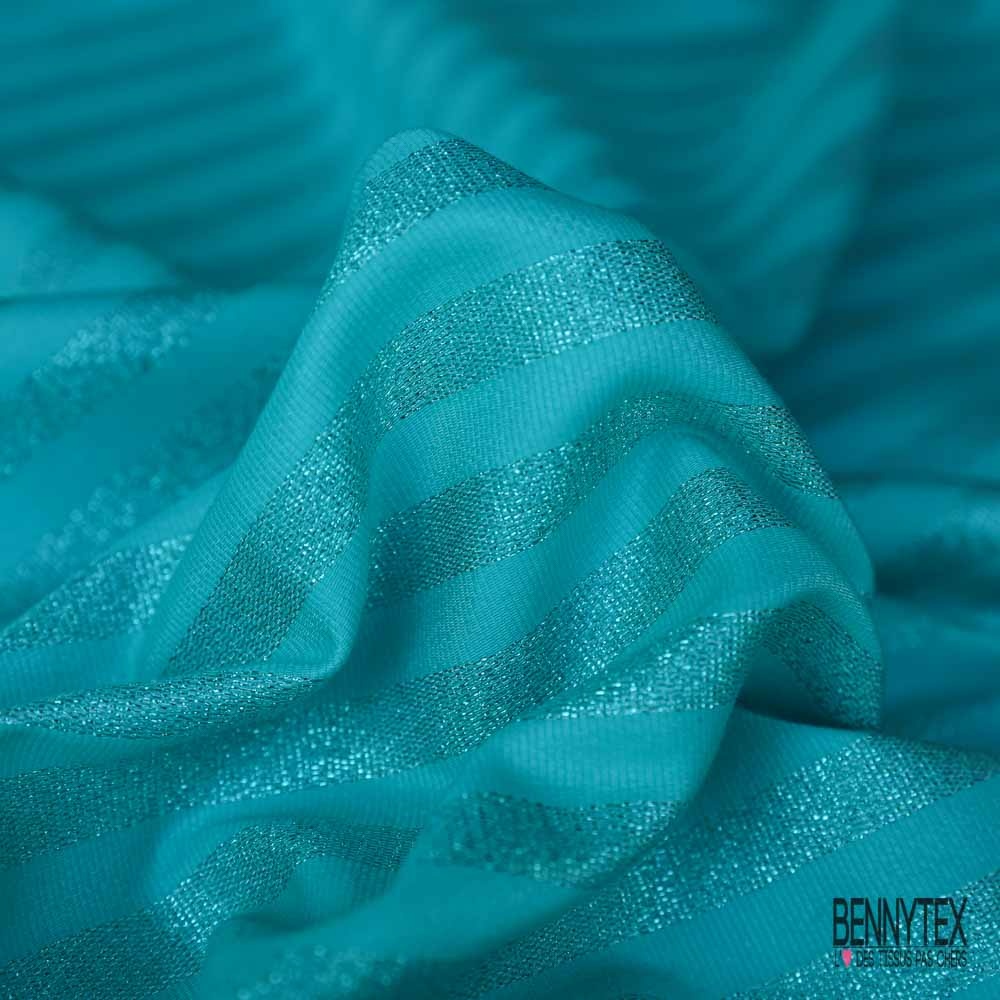 Jacquard imprimé grosse rayure horizontale vert d'eau paillette vert d'eau