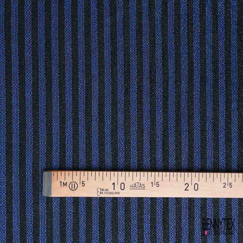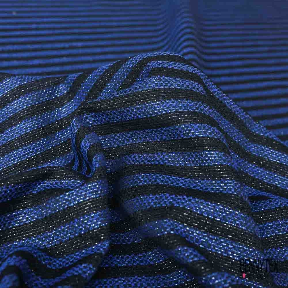 Jacquard imprimé rayure horizontale noir bleu roi lurex noir bleu