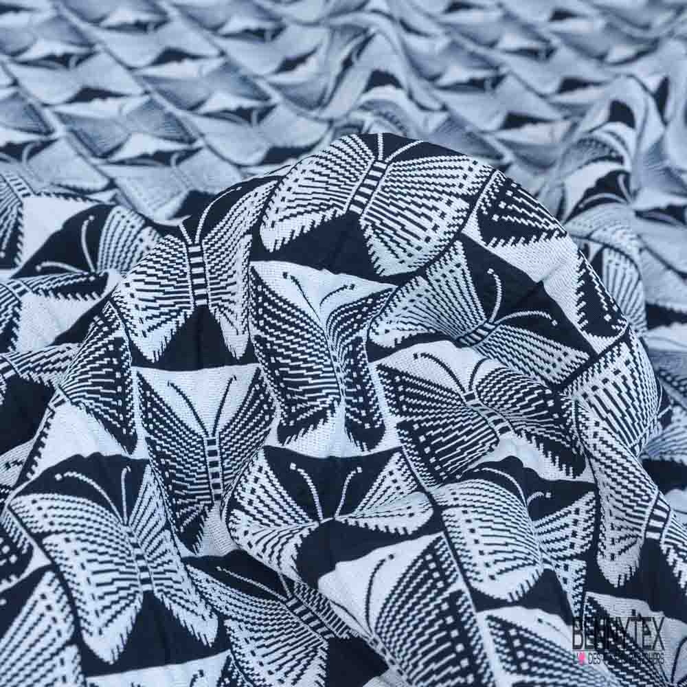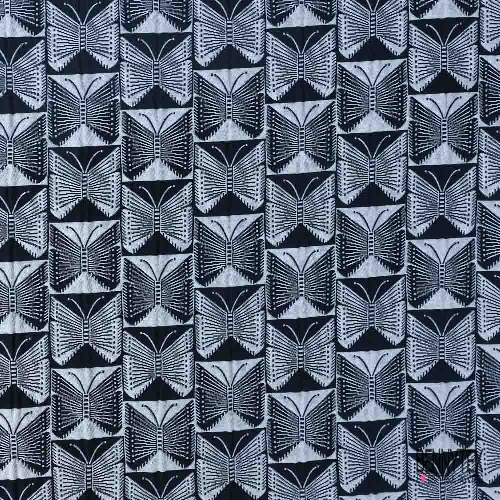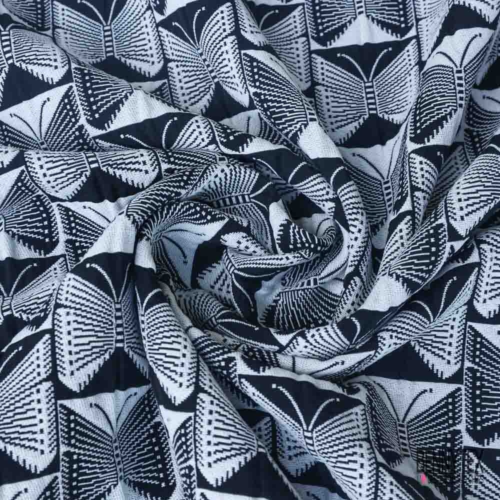 Jacquard imprimé papillon stylisé dans damier noir et blanc discret