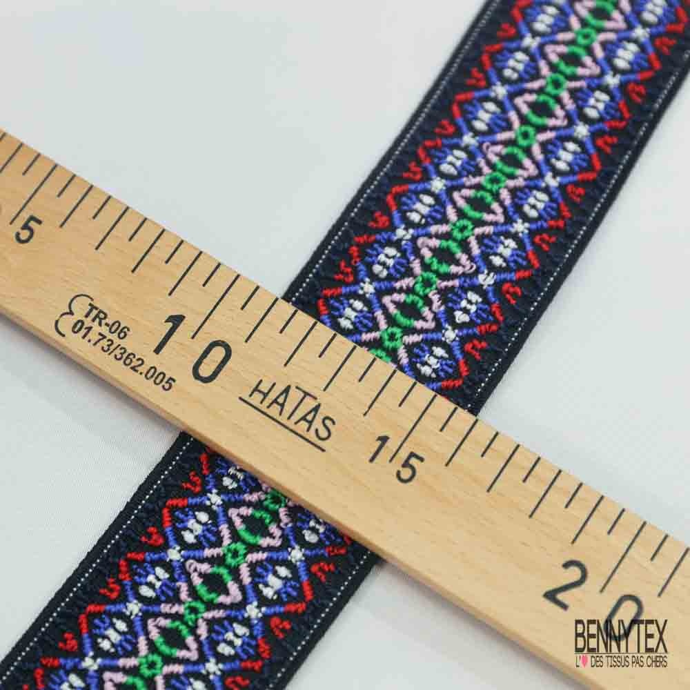 Bande élastique fantaisie motif amérindien multicolore fond noir