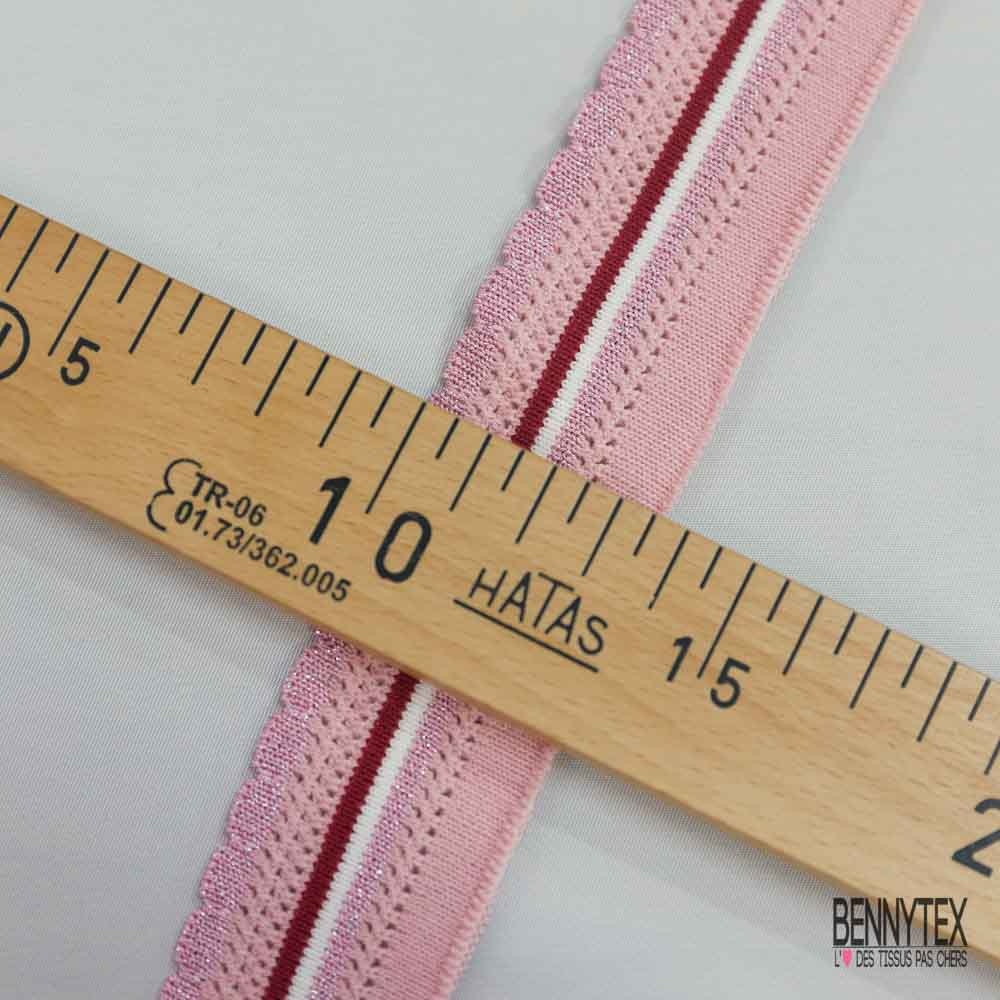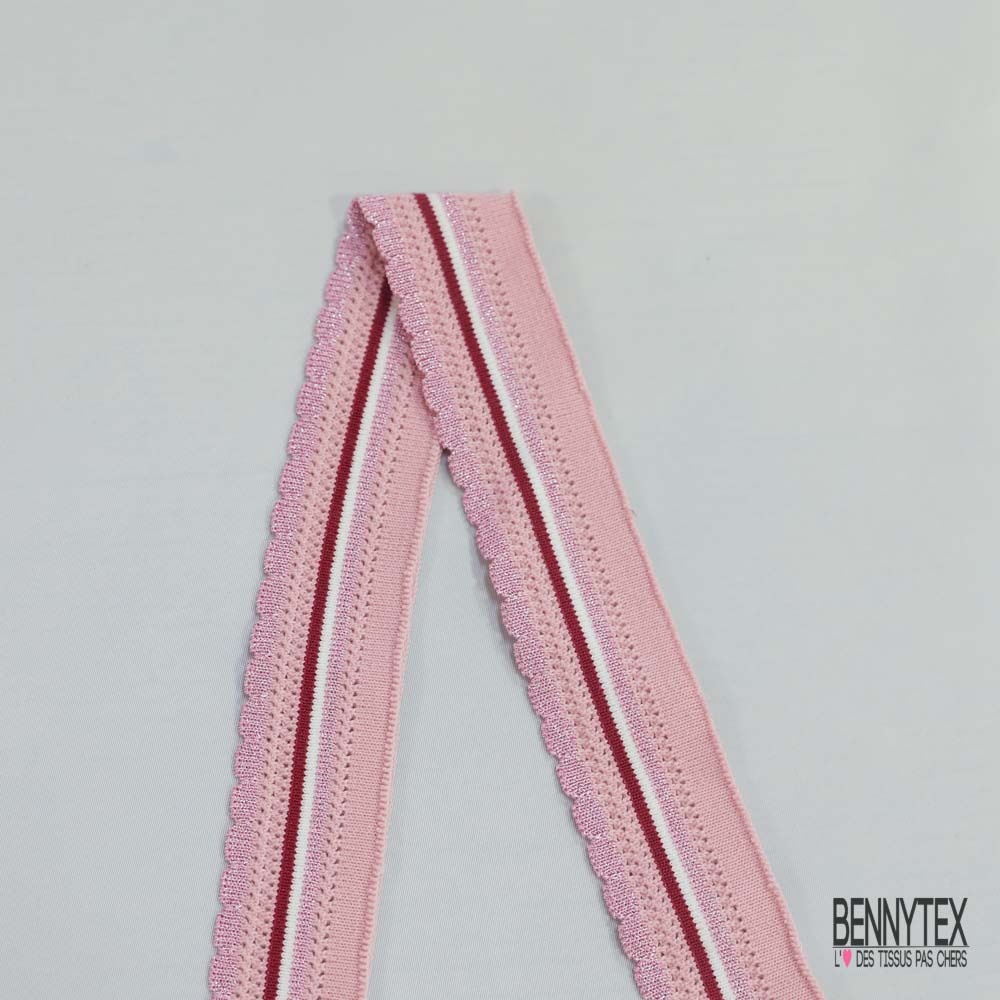 Bande bord cote festonnée lurex rose framboise blanc rose ajourée