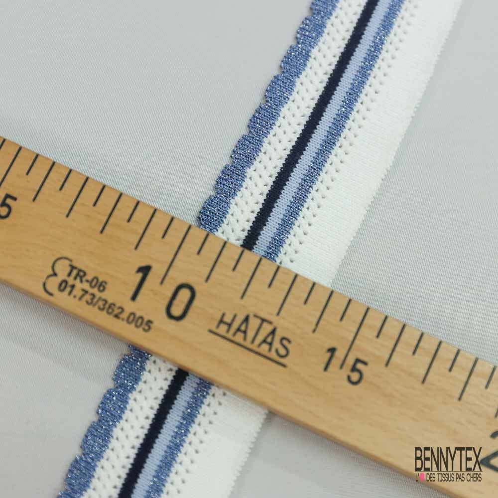 Bande bord cote festonnée lurex bleu marine blanc ciel ajourée