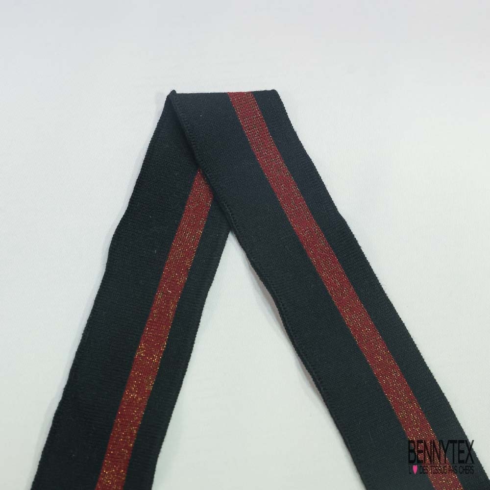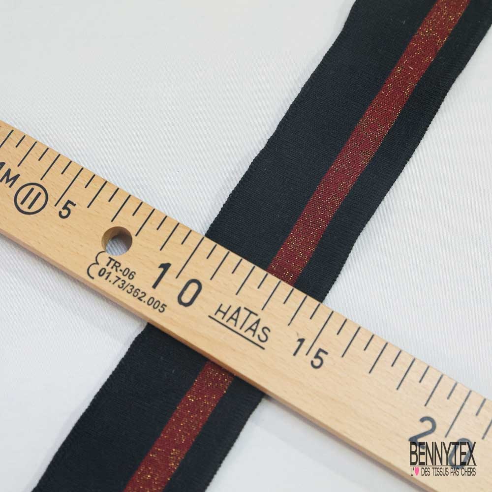 Bande bord cote rayé noir lie de vin chiné lurex cuivre