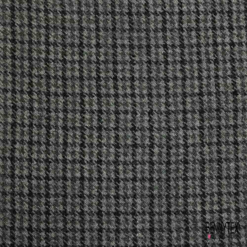 Natté de laine souple quadrillage noir kaki fond gris moyen