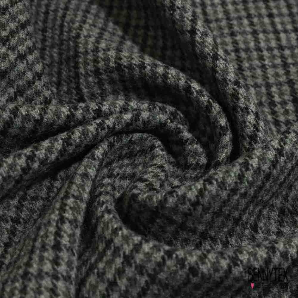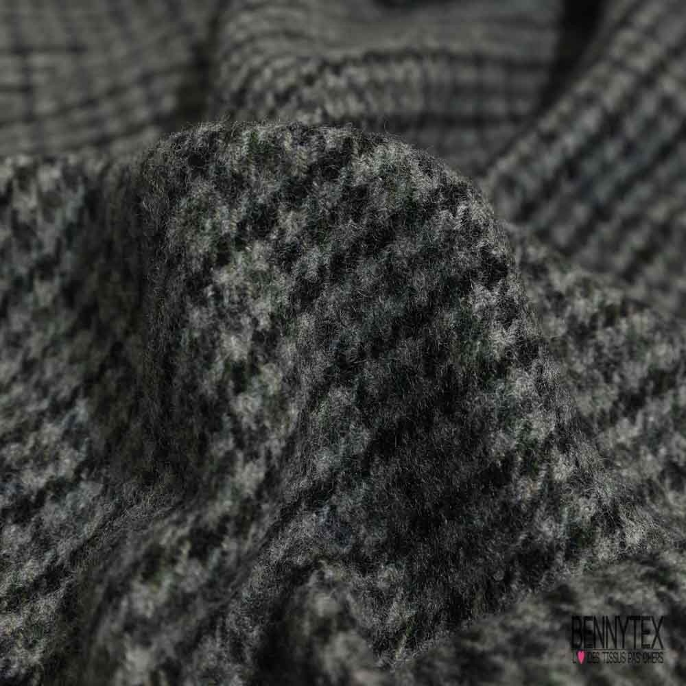 Laissez-vous séduire par notre Natté de laine souple quadrillage noir kaki fond gris moyen