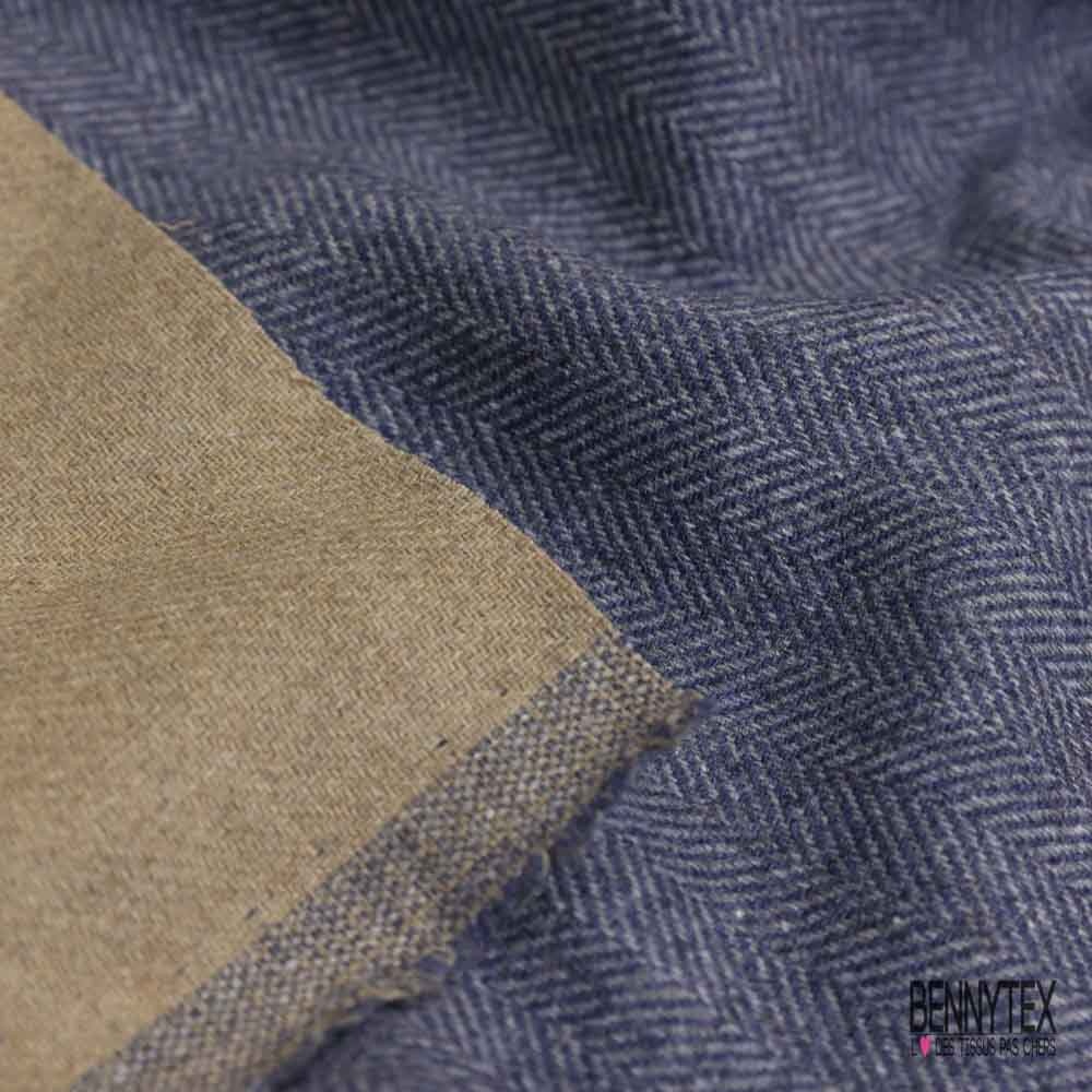 Laissez-vous séduire par notre Sergé de laine double face souple recto chevron bleu verso uni beige