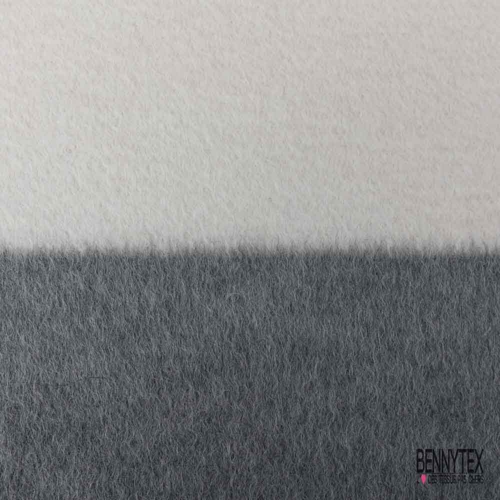 Mohair de laine vierge rayure horizontale gris blanc cassé envers tissée