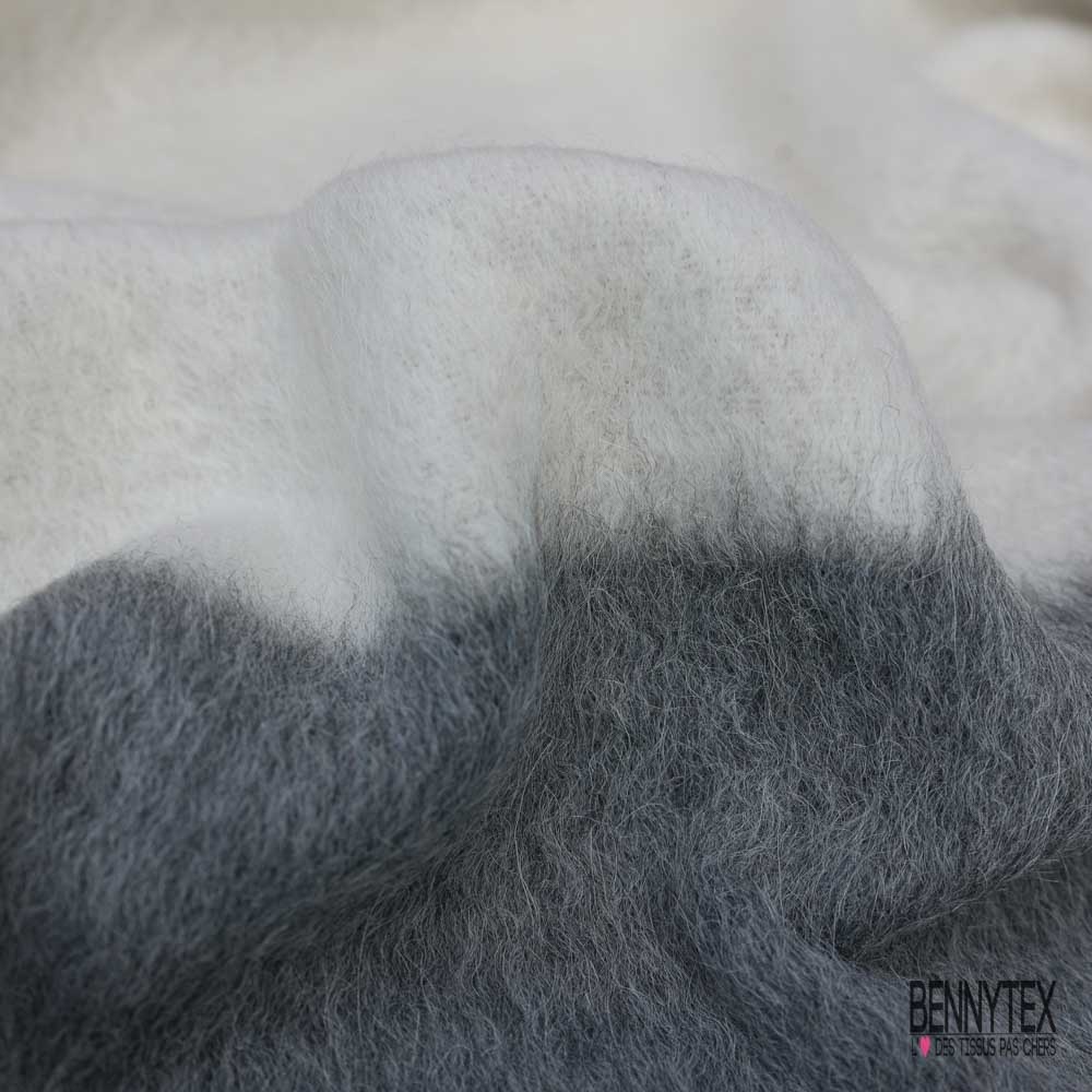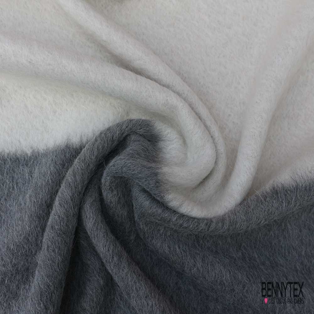 Laissez-vous séduire par notre Mohair de laine vierge rayure horizontale gris blanc cassé envers tissée